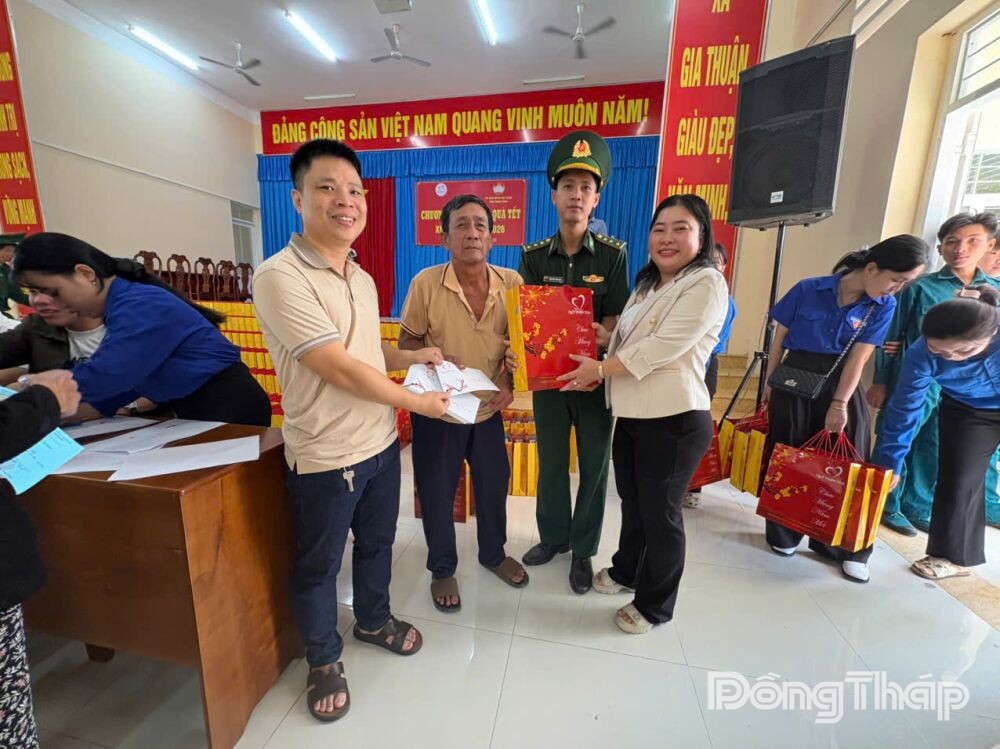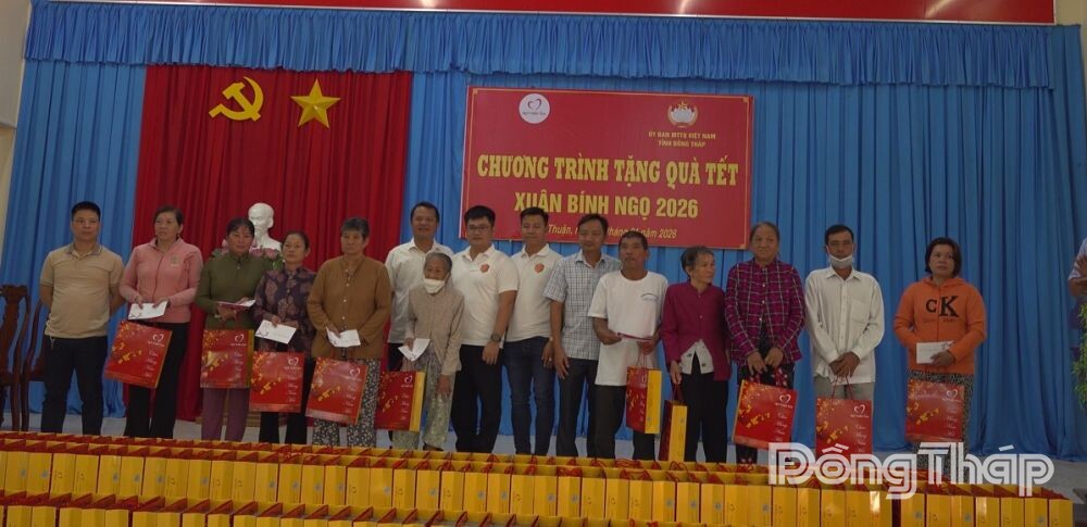 (ĐTO) Sáng 25-1, tại hội trường Đảng Ủy xã Gia Thuận, Ủy ban MTTQ Việt Nam tỉnh Đồng Tháp, Ủy ban MTTQ Việt Nam xã Gia Thuận, Gò Công Đông, Tân Đông, Tân Điền, Tân Hòa phối hợp với Tập đoàn Vingroup, Quỹ Thiện Tâm tổ chức Chương trình trao tặng quà cho các hộ gia đình có hoàn cảnh khó khăn mừng Đảng, mừng xuân Bính Ngọ 2026.