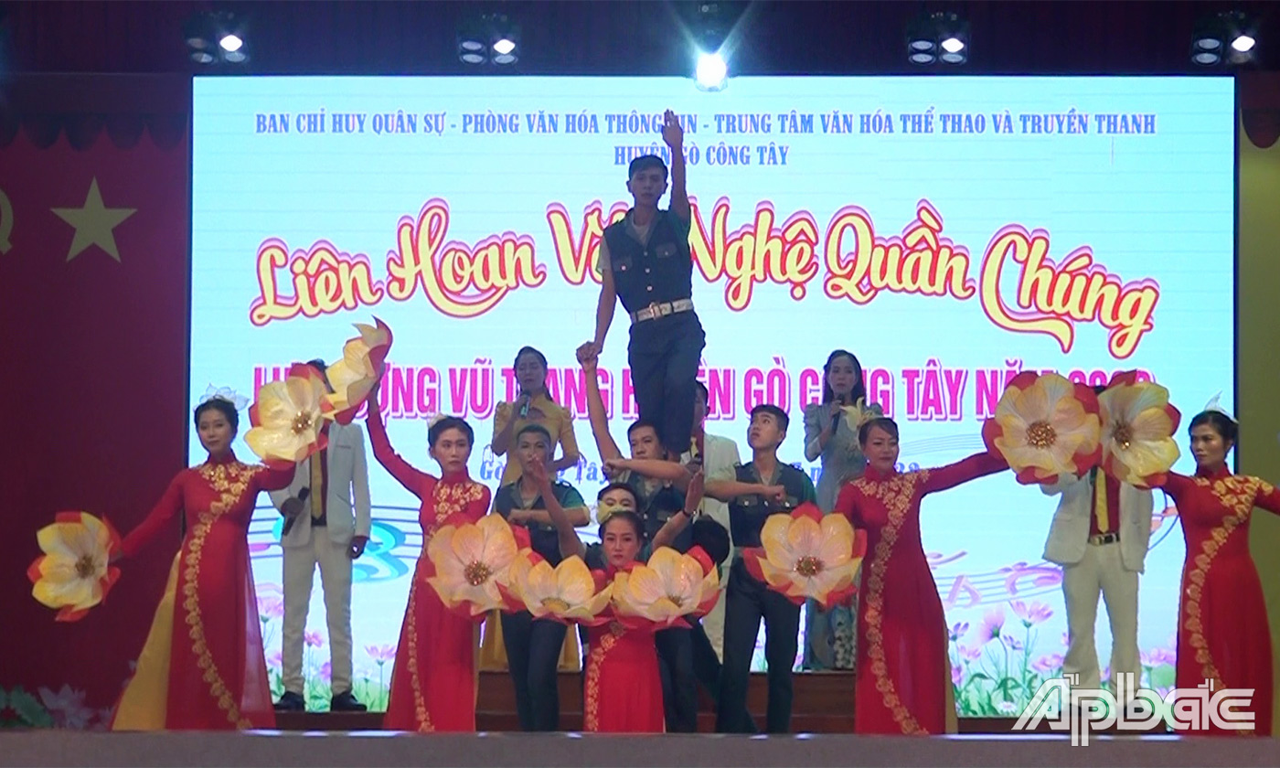 Liên hoan Văn nghệ quần chúng Lực lượng vũ trang huyện Gò Công Tây năm nay được chuẩn bị chu đáo, thu hút sự tham gia của 13/13 xã, thị trấn, 3 đơn vị cơ quan với 25 tiết mục.