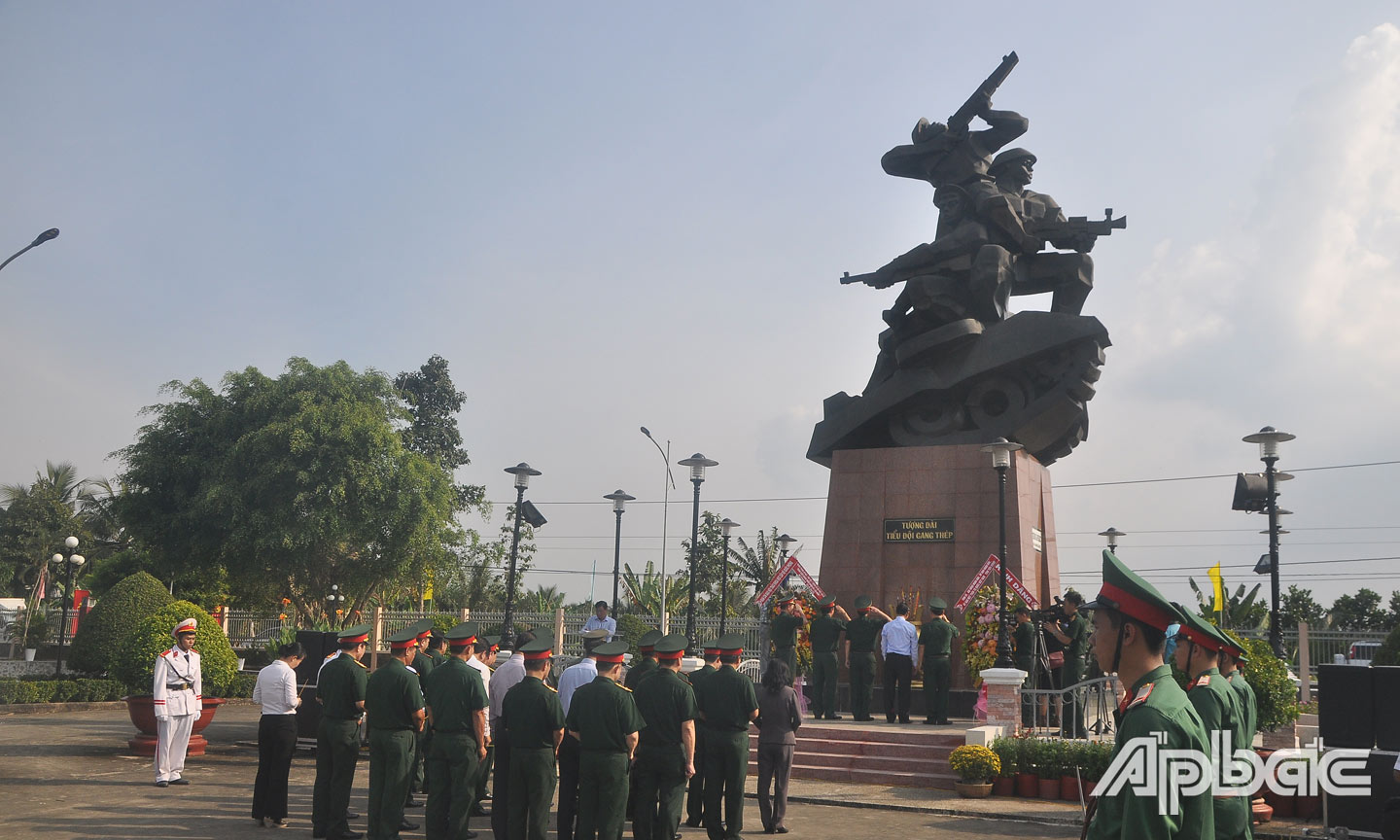 | Lãnh đạo Bộ Quốc phòng thăm Di tích Chiến thắng Ấp Bắc. |