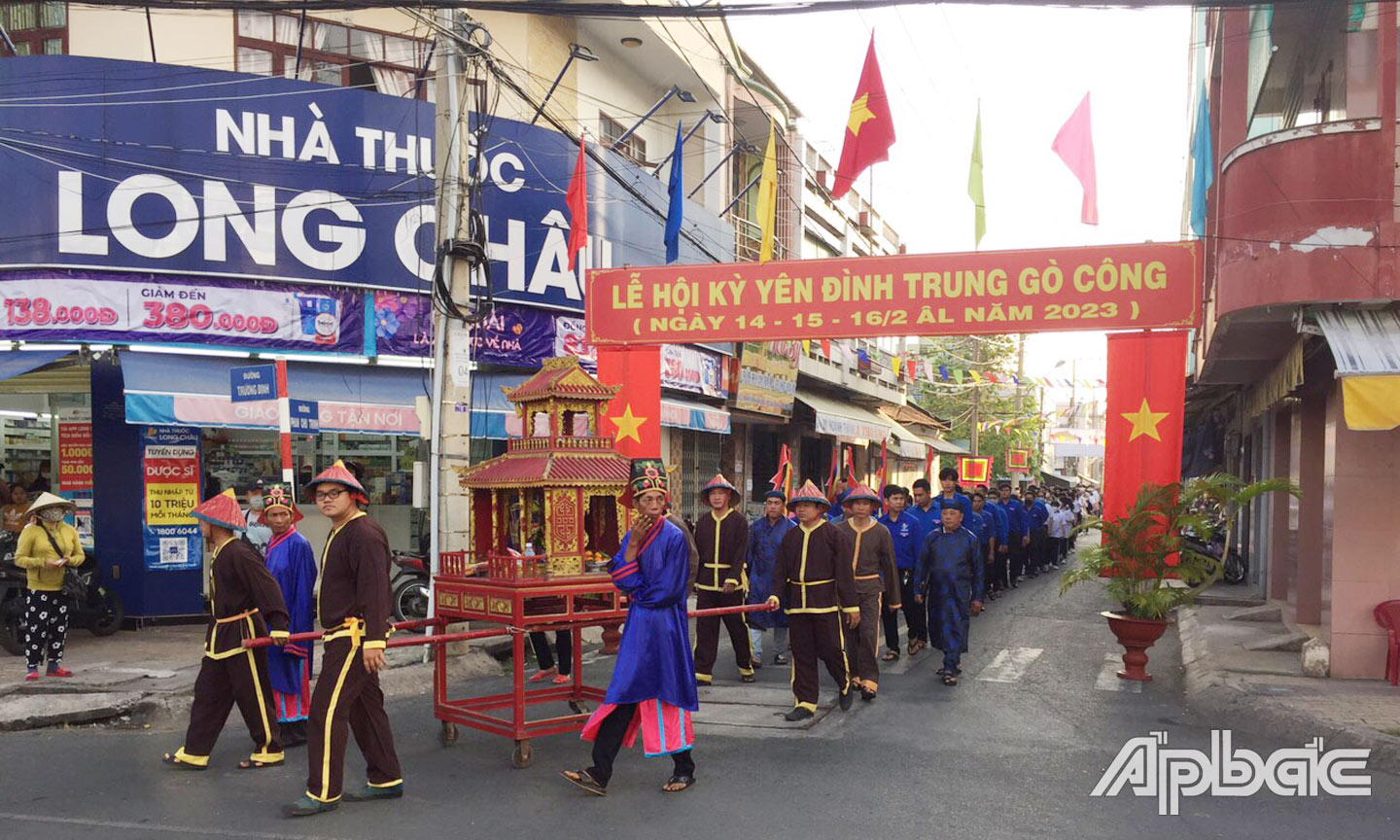 Trong 3 ngày diễn ra, Lễ hội Kỳ yên đình Trung tổ chức nhiều hoạt động sôi nổi, hấp dẫn như: Lễ nghinh thần, Lễ chiêu u, Lễ an vị khải sắc, Lễ chánh tế, Lễ tế tiền hiền… Trong những ngày diễn ra lễ hội, khu vực trung tâm TX. Gò Công nhộn nhịp hẳn lên, người dân dọn dẹp nhà cửa tươm tất, mang xôi, gà, heo quay, hương đăng, trà, quả… đến tế lễ, cầu một năm quốc thái dân an, mưa thuận gió hòa.