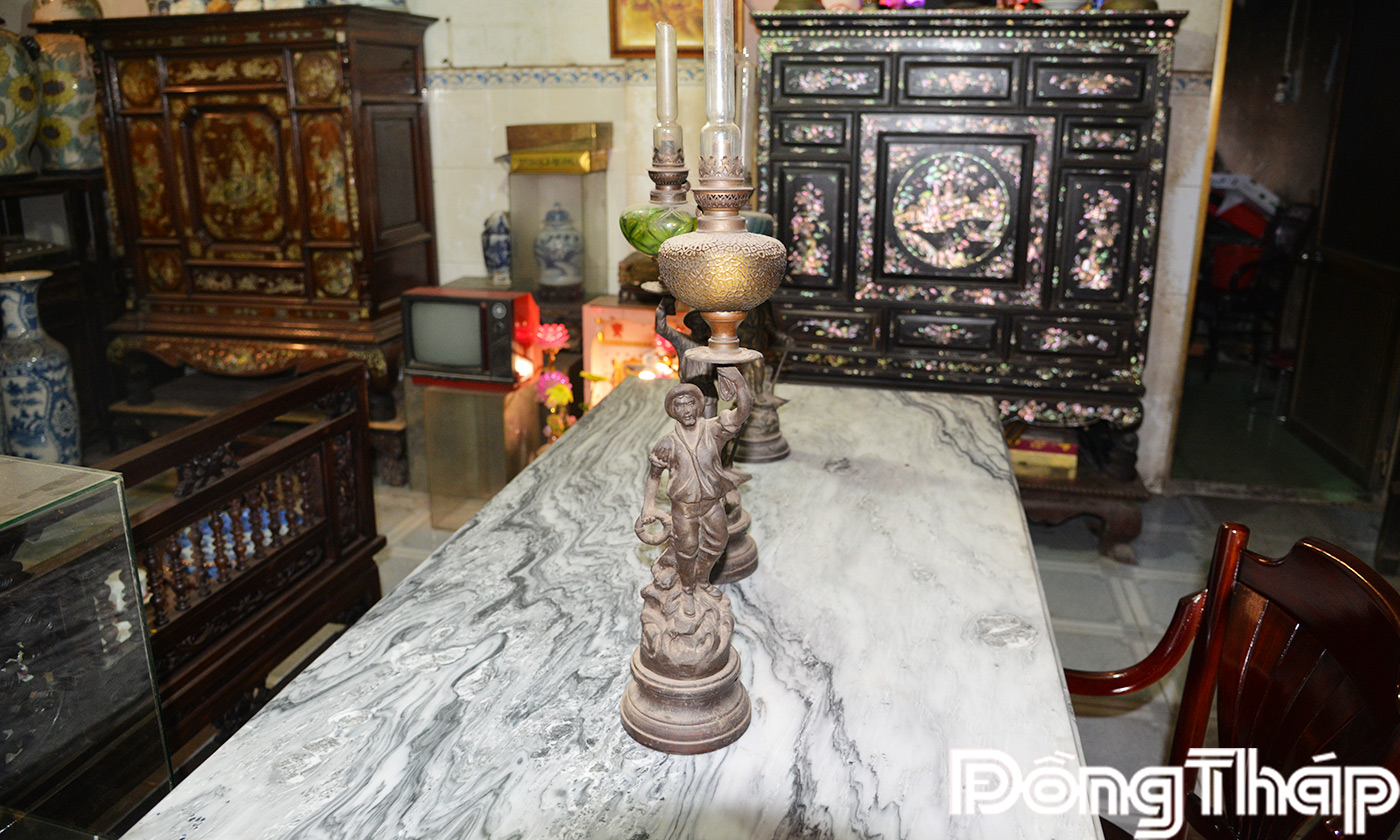 | Những món đồ xưa như: Bàn, ghế, tủ làm bằng gỗ cẩm lai, cẩn ốc xà cừ được ông Dương Văn Song sưu tầm truyền đạt những giá trị văn hóa xưa cho con cháu. |