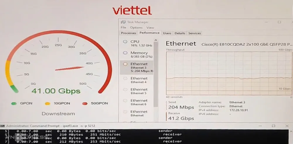 Công nghệ 50G PON được Viettel thử nghiệm cho tốc độ truy cập đạt 41 Gb/giây, sắp triển khai thực tế tại Việt Nam.