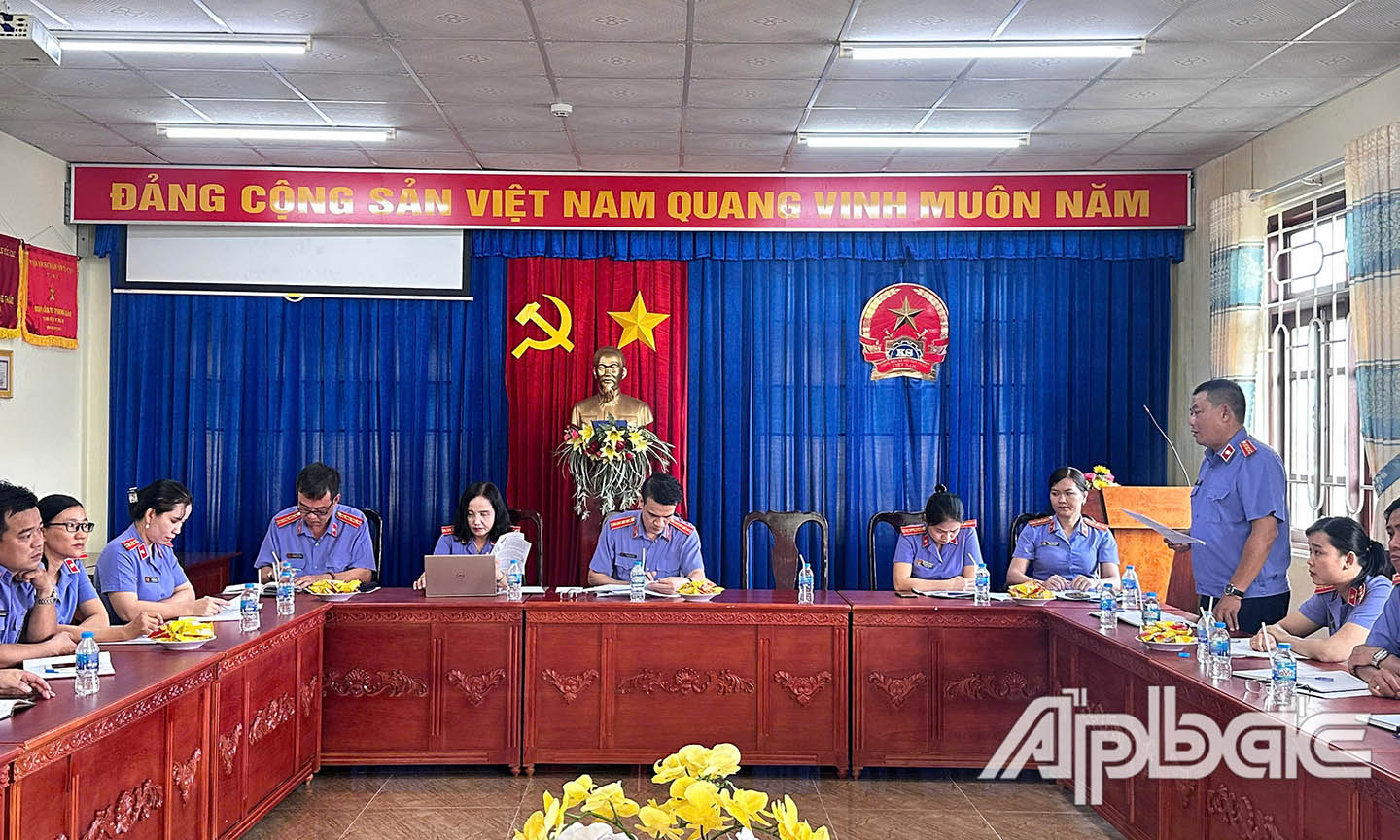 Tham dự buổi làm việc có đồng chí Phạm Xuân Minh, Phó Viện trưởng và đồng chí Trần Huỳnh Bích Phượng, Phó Viện trưởng cùng đại diện lãnh đạo Phòng Tổ chức cán bộ, Phòng 9, Phòng 10 VKSND tỉnh Đồng Tháp.