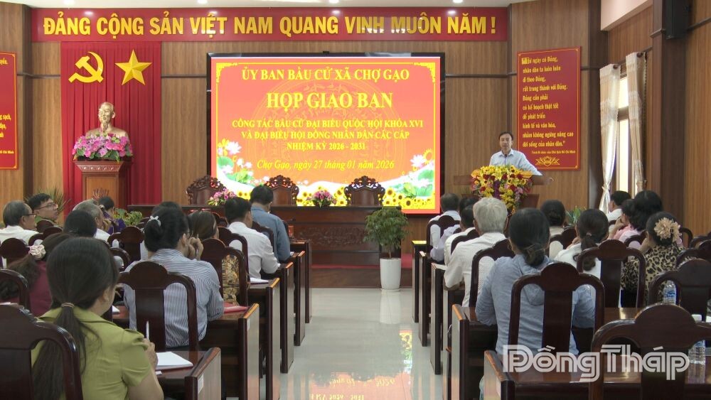 (ĐTO) Ngày 27-1, Ủy ban bầu cử (UBBC) xã Chợ Gạo, tỉnh Đồng Tháp tổ chức Hội nghị giao ban công tác bầu cử đại biểu Quốc hội (ĐBQH) khóa XVI và đại biểu HĐND các cấp nhiệm kỳ 2026 - 2031.
