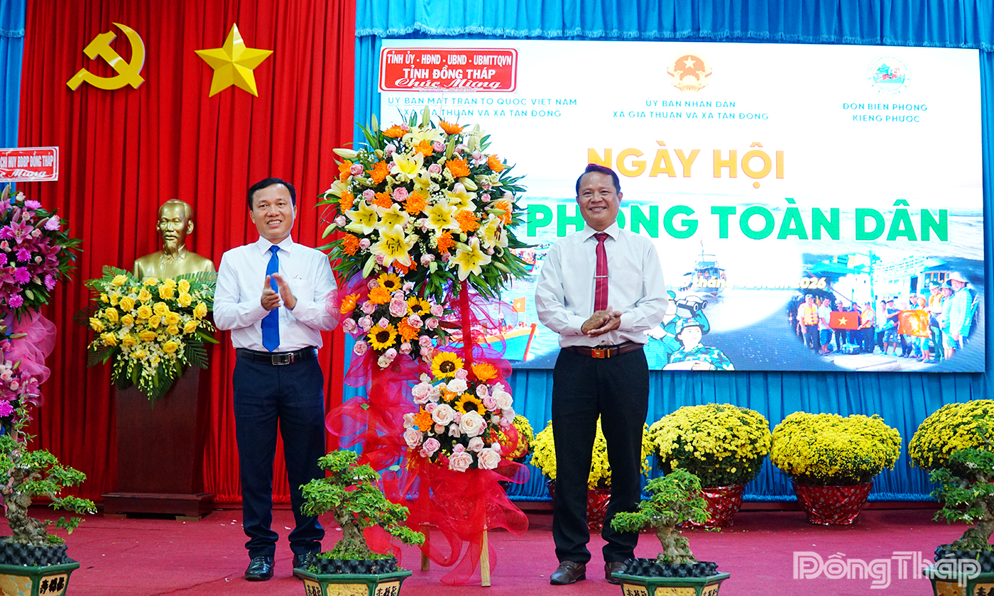 (ĐTO) Chiều 26-2, tại Hội trường UBND xã Gia Thuận, UBND xã Gia Thuận và xã Tân Đông phối hợp Đồn Biên phòng Kiểng Phước (tỉnh Đồng Tháp) tổ chức “Ngày hội Biên phòng toàn dân” năm 2026 và sơ kết 1 năm thực hiện phong trào “Toàn dân tham gia bảo vệ chủ quyền lãnh thổ, an ninh biên giới quốc gia trong tình hình mới”.