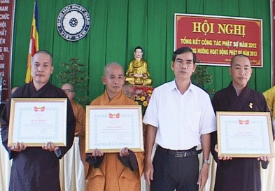 Dịp tổng kết công tác Phật sự năm 2012, Ban trị sự Phật giáo tỉnh Tiền Giang đã tặng bằng tuyên dương công đức cho 10 tập thể và 1 cá nhân hoàn thành tốt công tác phật sự, từ thiện xã hội; Ủy ban MTTQ tỉnh tặng Bằng khen cho 3 tập thể và 9 cá nhân; Ban đại diện Phật giáo huyện tặng Bằng tuyên dương công đức cho 8 tập thể và 3 cá nhân hoàn thành xuất sắc công tác phật sự, từ thiện - xã hội trong năm qua.