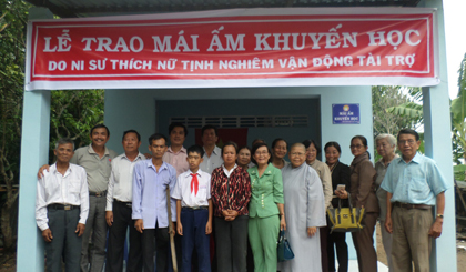 Vừa qua, gia đình em Phạm Văn Mẫn (ngụ ấp An Lợi, xã Đông Hòa Hiệp, huyện Cái Bè) được tặng “Mái ấm khuyến học” trị giá 45 triệu đồng, trong đó Hội Khuyến học tỉnh vận động Ni sư Thích nữ Tịnh Nghiêm (trụ trì chùa Tịnh Nghiêm, TP. Mỹ Tho) hỗ trợ 25 triệu đồng, Hội Bảo trợ bệnh nhân nghèo, người khuyết tật và trẻ mồ côi tỉnh ủng hộ 5 triệu đồng, phần còn lại do gia đình góp thêm.