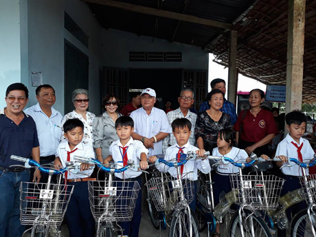 Dịp này 20 học sinh trường Tiểu học, THCS Thạnh Mỹ còn khó khăn về phương tiện đi lại cũng nhận được 20 xe đạp và 2 triệu đồng.