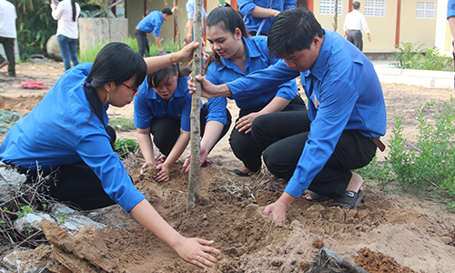 Sau lễ phát động, các đồng chí lãnh đạo, đoàn viên, thanh niên cùng người dân địa phương đã trồng 60 cây dầu và cây sao tại khuôn viên Đền thờ Võ Tánh.