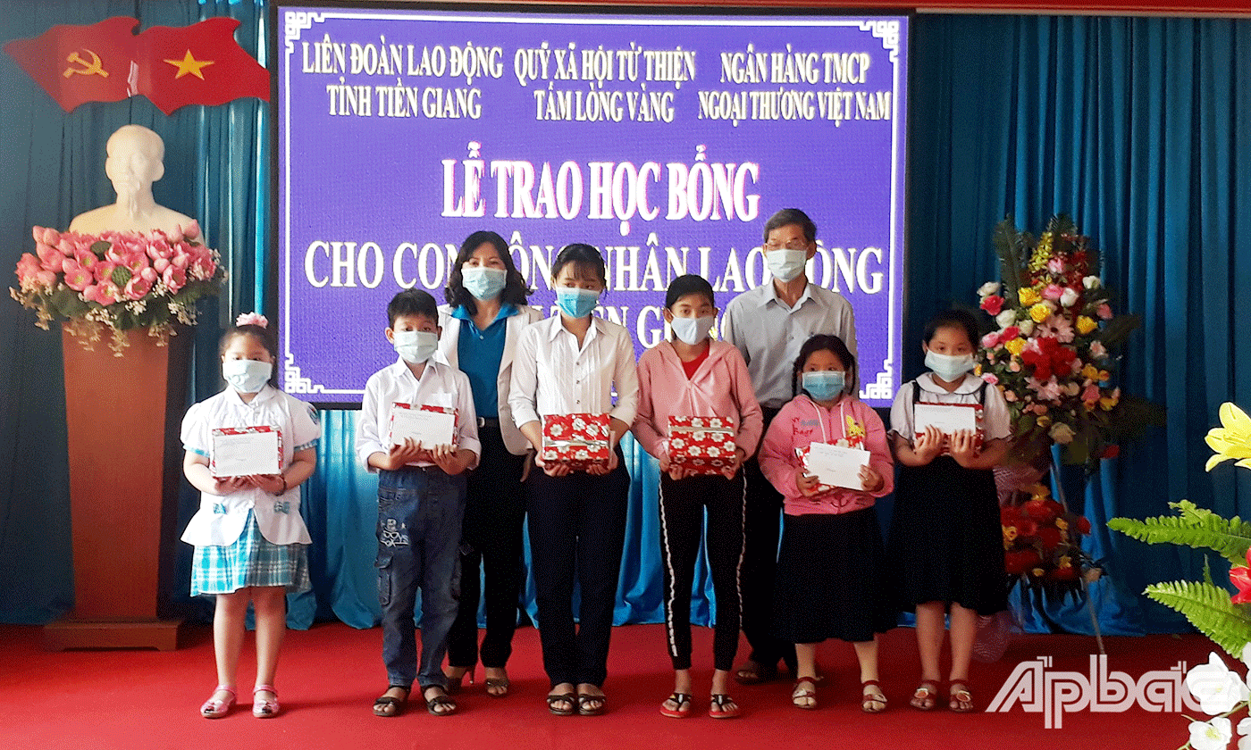 | Trao học bổng cho con công nhân, lao động có hoàn cảnh khó khăn trên địa bàn tỉnh Tiền Giang. |