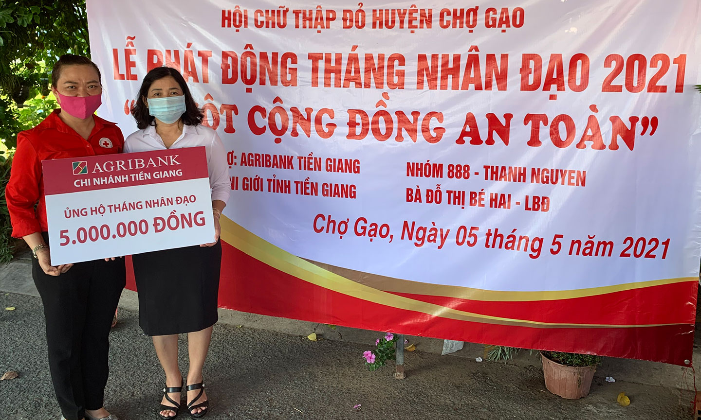 Nhân dịp này, Agribank Tiền Giang đã ủng hộ 5 triệu đồng để Hội Chữ thập đỏ tỉnh Tiền Giang mua quà tặng cho những hoàn cảnh khó khăn trên địa bàn. Số tiền ủng hộ tuy ít ỏi nhưng mang cả tấm lòng nhân ái của người lao động Agribank Tiền Giang.