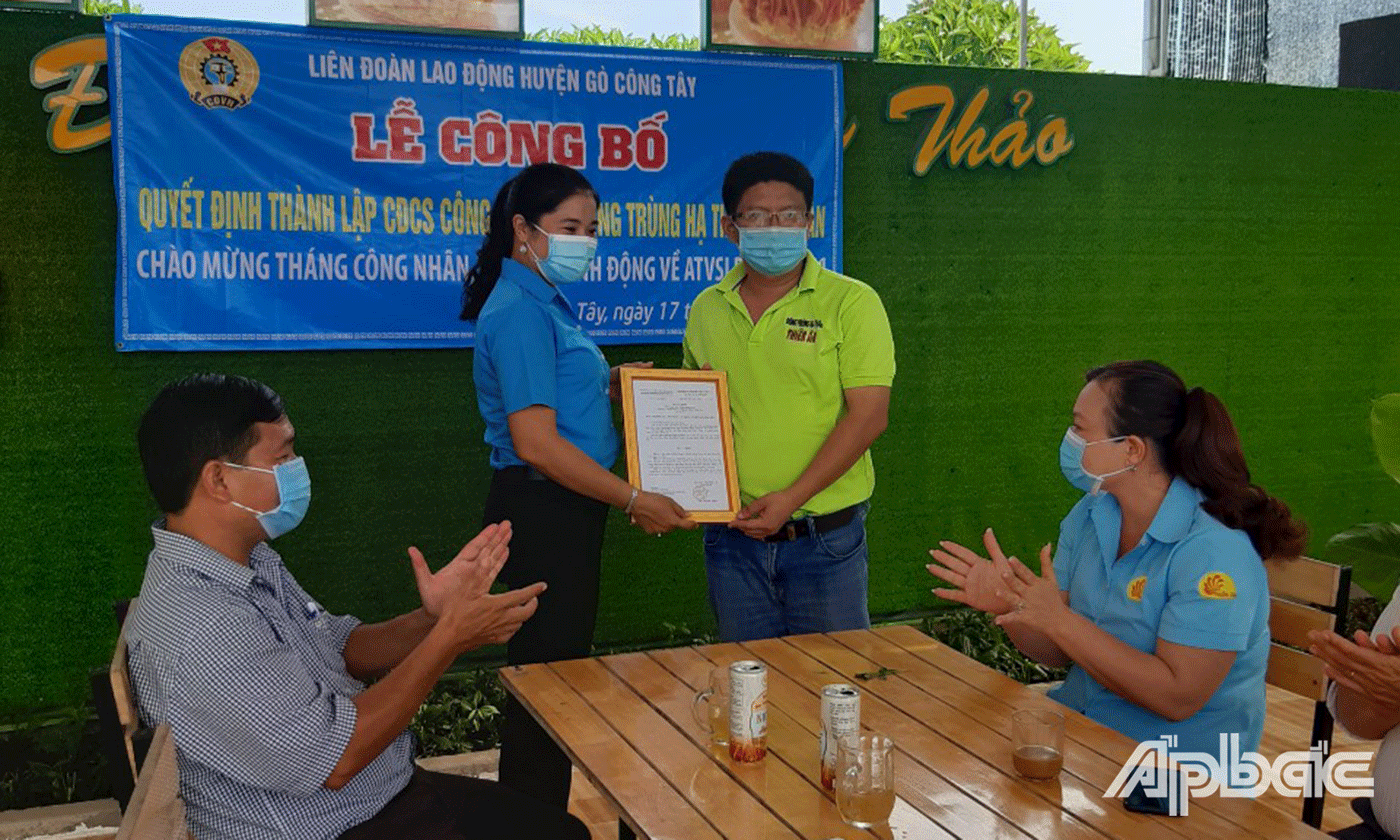 (ABO) Liên đoàn Lao động (LĐLĐ) huyện Gò Công Tây, tỉnh Tiền Giang vừa tổ chức Lễ thành lập Công đoàn cơ sở Công ty TNHH Đông trùng hạ thảo Thiên Ân (huyện Gò Công Tây).