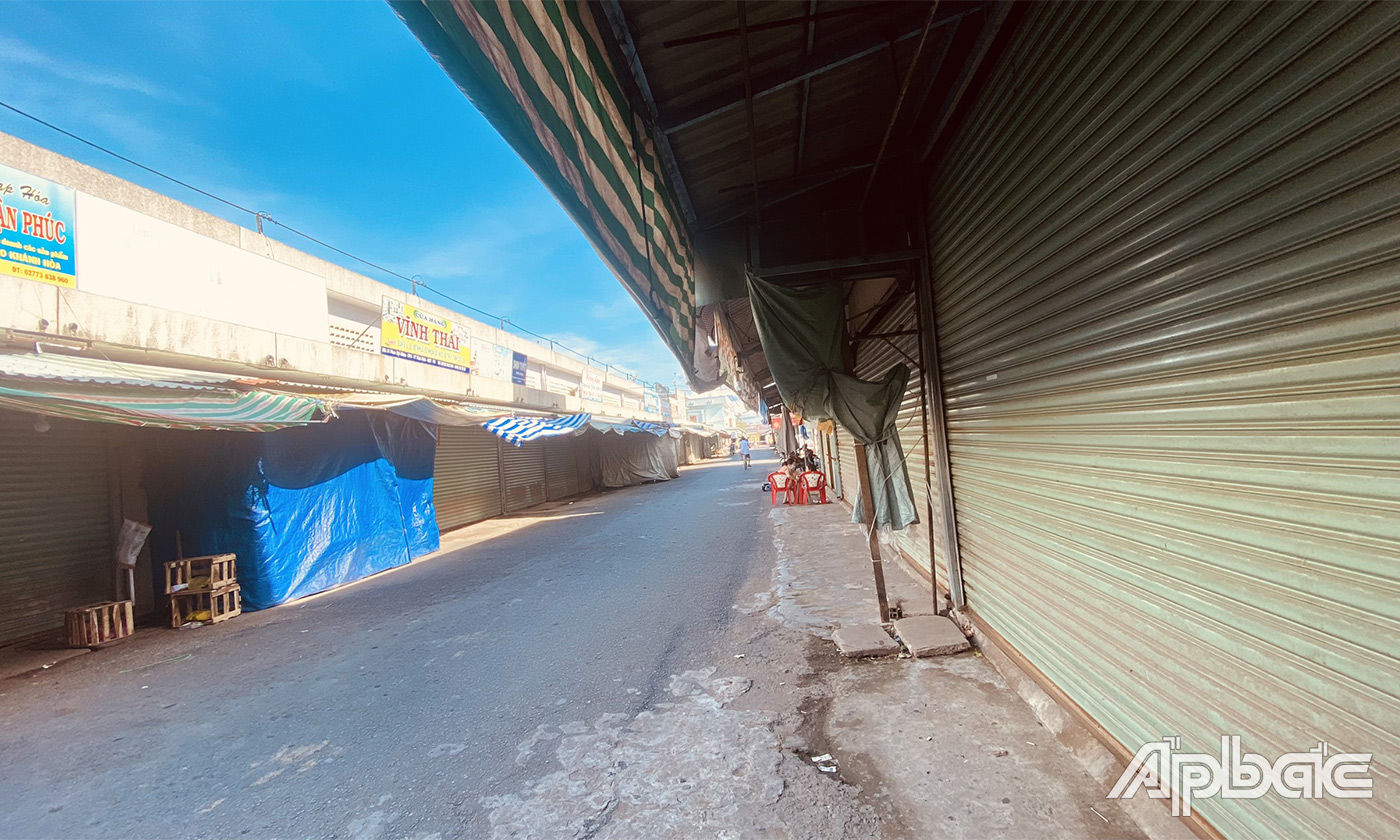 | Hoạt động chợ Vĩnh Bình khá trầm lắng, nhiều quầy sạp đóng cửa, nghỉ bán. |