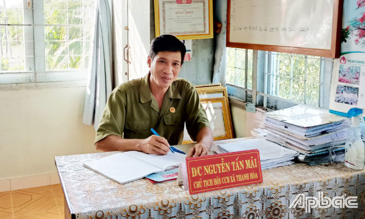 Năm 2016, anh Nguyễn Tấn Mãi (sinh năm 1976) được bầu làm Chủ tịch Hội Cựu chiến binh (CCB) xã Thanh Hòa (TX. Cai Lậy, tỉnh Tiền Giang). Từ đó đến nay, anh không chỉ đi đầu trong phát triển kinh tế gia đình, mà luôn nỗ lực chăm lo đời sống cho hội viên, quan tâm đến những hoàn cảnh khó khăn, vận động người dân hiến đất làm đường, góp sức xây dựng xã nông thôn mới.
