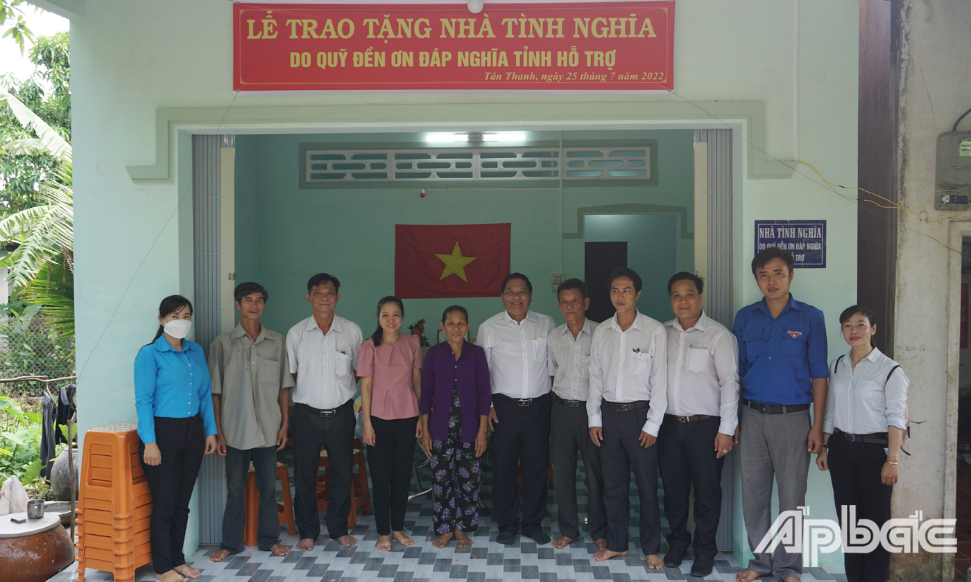 | Bàn giao nhà tình nghĩa cho bà Huỳnh Thị Kiềm, vợ liệt sĩ, ngụ ấp 2, xã An Hữu. |