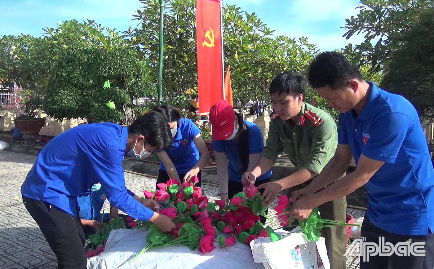 Đoàn viên, thanh niên đã quét dọn rác, thu gom lá cây khô, làm sạch rong rêu bám trên các phần mộ các anh hùng liệt sĩ... Sau đó, đoàn viên, thanh niên đã thay mới gần 1.500 bó hoa sen do Công ty Viễn thông Viettel huyện Gò Công Tây tài trợ. Bên cạnh đó, Ban Thường vụ Huyện đoàn Gò Công Tây phát động Ban Chấp hành Đoàn Thanh niên 12 xã, thị trấn của huyện tổ chức ra quân dọn vệ sinh nhà bia, Bia chiến thắng, Khu di tích lịch sử... trên địa bàn các xã, thị trấn, thu hút gần 1.000 đoàn viên, thanh niên tham gia.