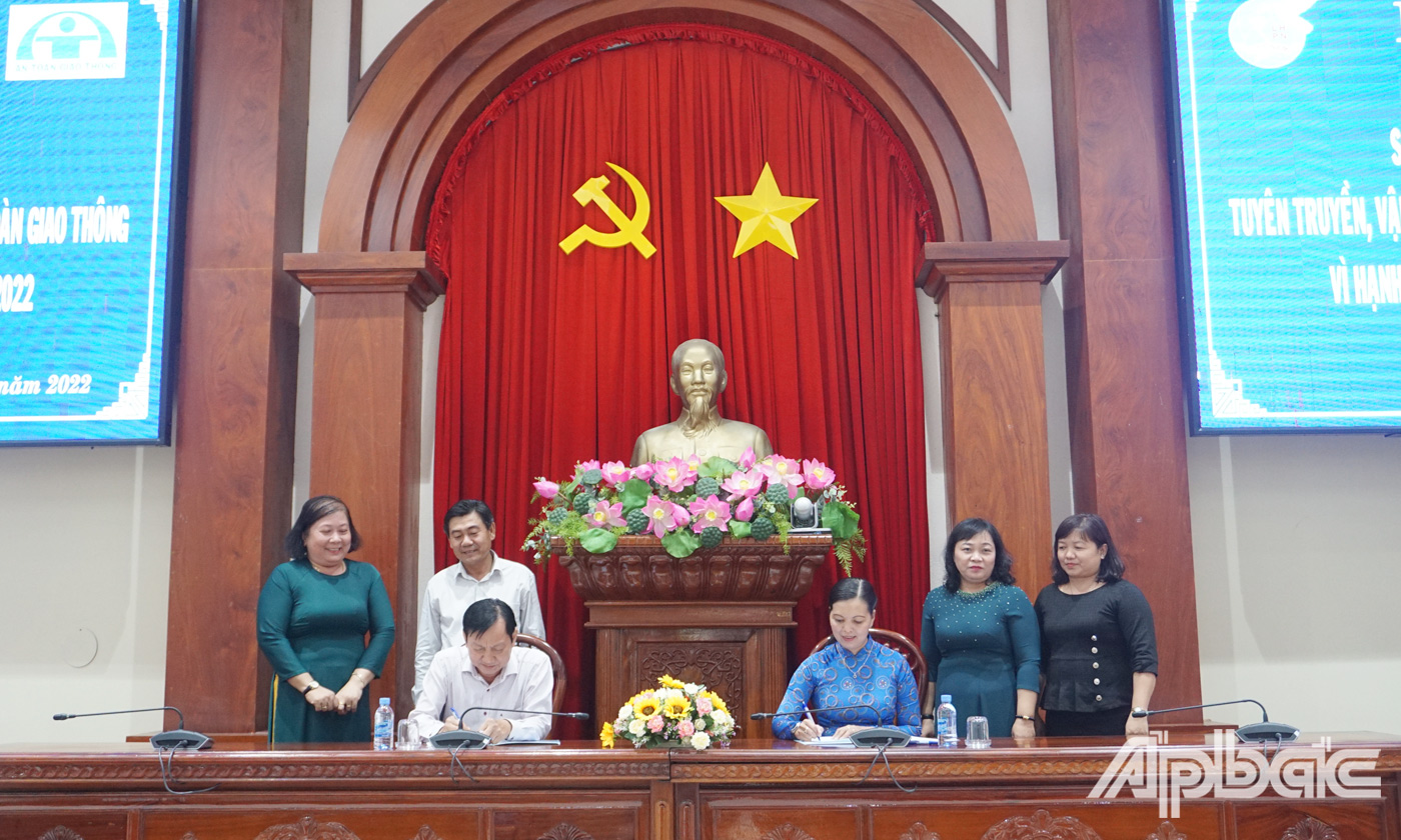 | Lãnh đạo Ban ATGT tỉnh và Hội LHPN tỉnh ký kết Chương trình phối hợp tuyên truyền, vận động “Phụ nữ tham gia đảm bảo ATGT vì hạnh phúc của mỗi gia đình” giai đoạn 2022 - 2027. |
