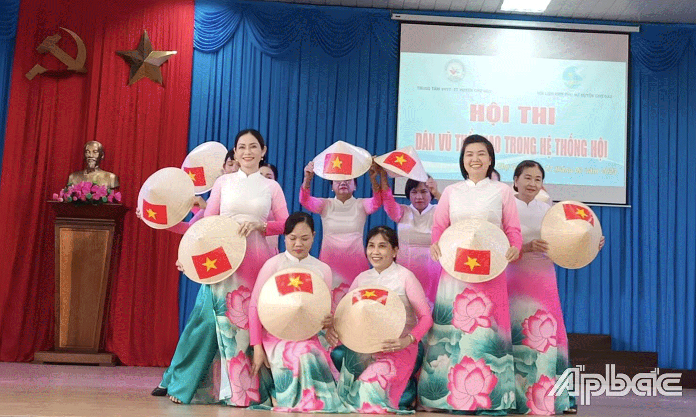 (ABO) Thiết thực chào mừng kỷ niệm 113 năm Ngày Quốc tế Phụ nữ (8-3-1910 - 8-3-2023), 1983 năm khởi nghĩa Hai Bà Trưng, 77 năm Ngày truyền thống ngành Thể dục thể thao Việt Nam (27-3), ngày 27-2, Ban Thường vụ Hội Liên hiệp Phụ nữ (LHPN) huyện Chợ Gạo phối hợp cùng Trung tâm Văn hóa, Thể thao và Truyền thanh huyện tổ chức Hội thi “Dân vũ thể thao” trong hệ thống Hội.