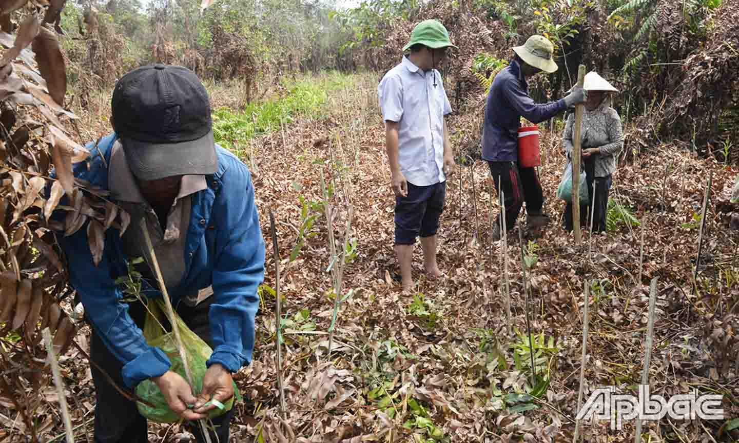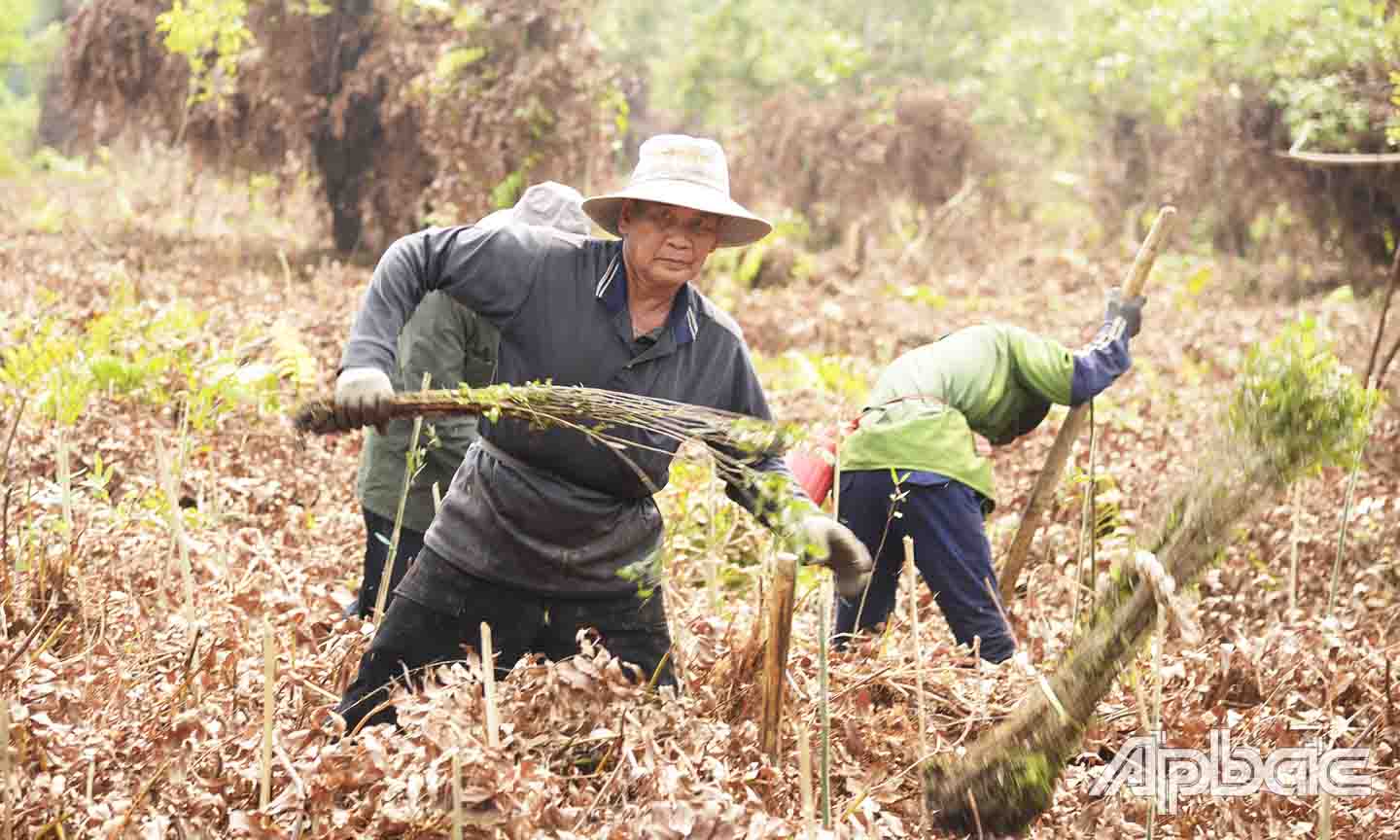 | Công nhân trồng tràm ở Khu Bảo tồn sinh thái Đồng Tháp Mười (huyện Tân Phước, tỉnh Tiền Giang). |
