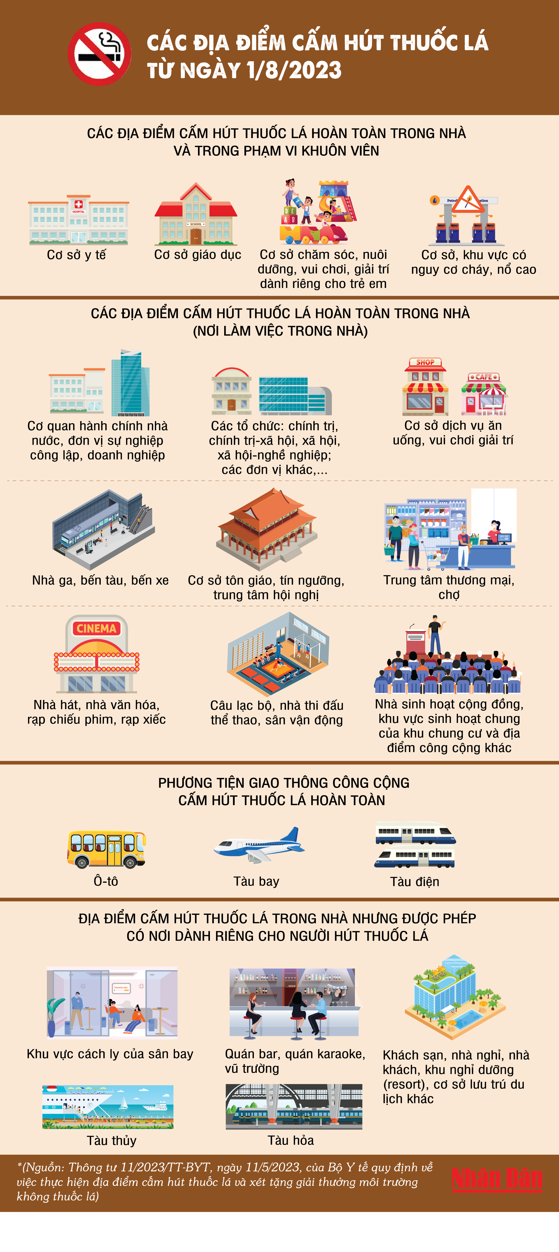 Các địa điểm cấm hút thuốc lá từ ngày 1/8/2023