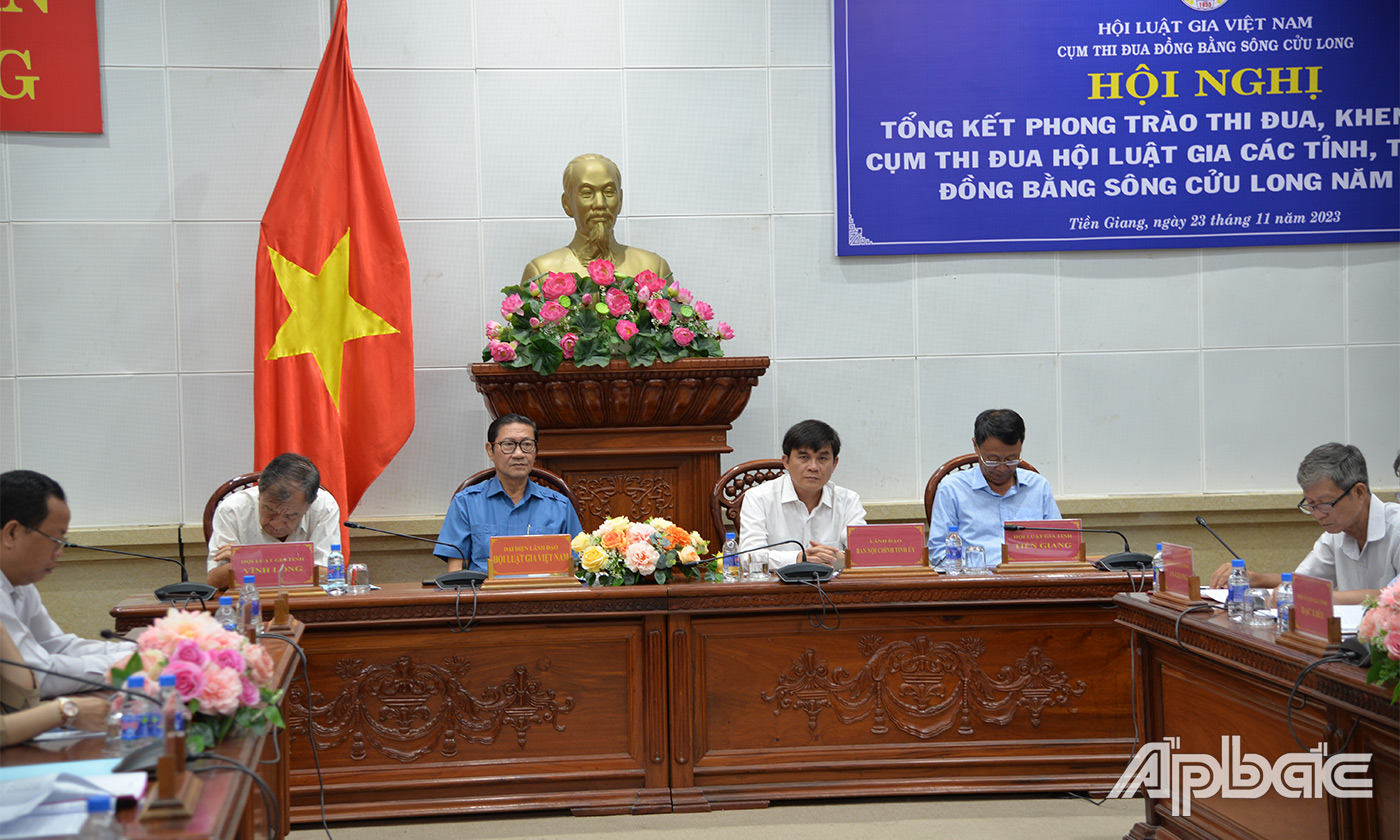Tham dự hội nghị có Ủy viên Ban Thường vụ Hội Luật gia Việt Nam Trần Dũng Anh; Ủy viên Ban Thường vụ, Trưởng Ban Nội chính Tỉnh ủy Tiền Giang Nguyễn Văn Mười; lãnh đạo các sở, ngành tỉnh Tiền Giang; cùng lãnh đạo Hội Luật gia 13 tỉnh, thành phố ĐBSCL...