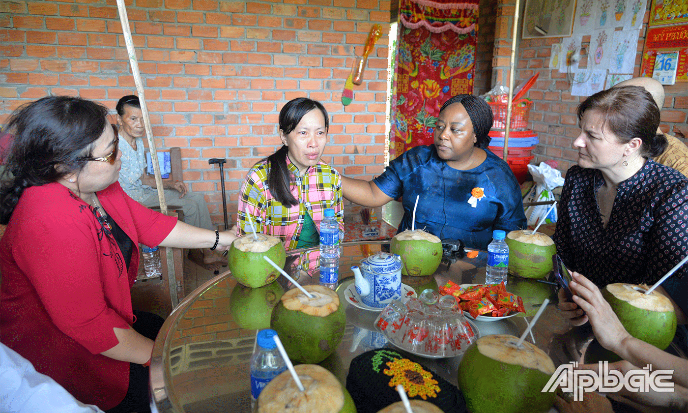 Đi cùng đoàn có bà Thân Thị Thiên Hương, Chuyên gia giới, Đại sứ quán Úc tại Việt Nam; bà Caroline T.Nyamayemombe, Quyền trưởng đại diện Tổ chức UN WOMEN tại Việt Nam; Phó Chủ tịch Hội LHPN tỉnh Tiền Giang Đặng Thị Ngọc Điệp và cán bộ Hội LHPN tỉnh.