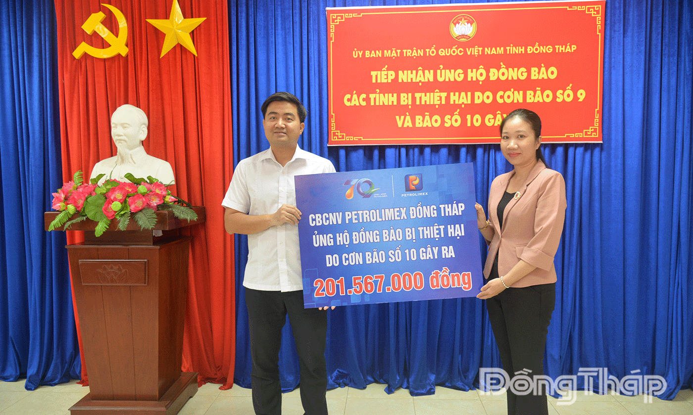 Công ty TNHH MTV Petrolimex Đồng Tháp ủng hộ trên 200 triệu đồng khắc phục hậu quả bão số 9, số 10