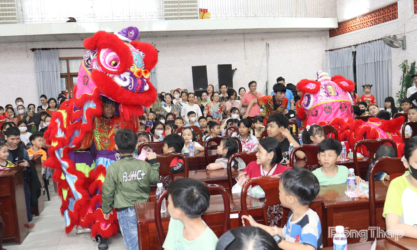 Chương trình mở đầu bằng những màn múa lân sôi động cùng các tiết mục văn nghệ đặc sắc, hoạt cảnh “Chú Cuội - Chị Hằng” tái hiện không khí Trung thu truyền thống, tạo sự háo hức, rộn ràng cho các em nhỏ.