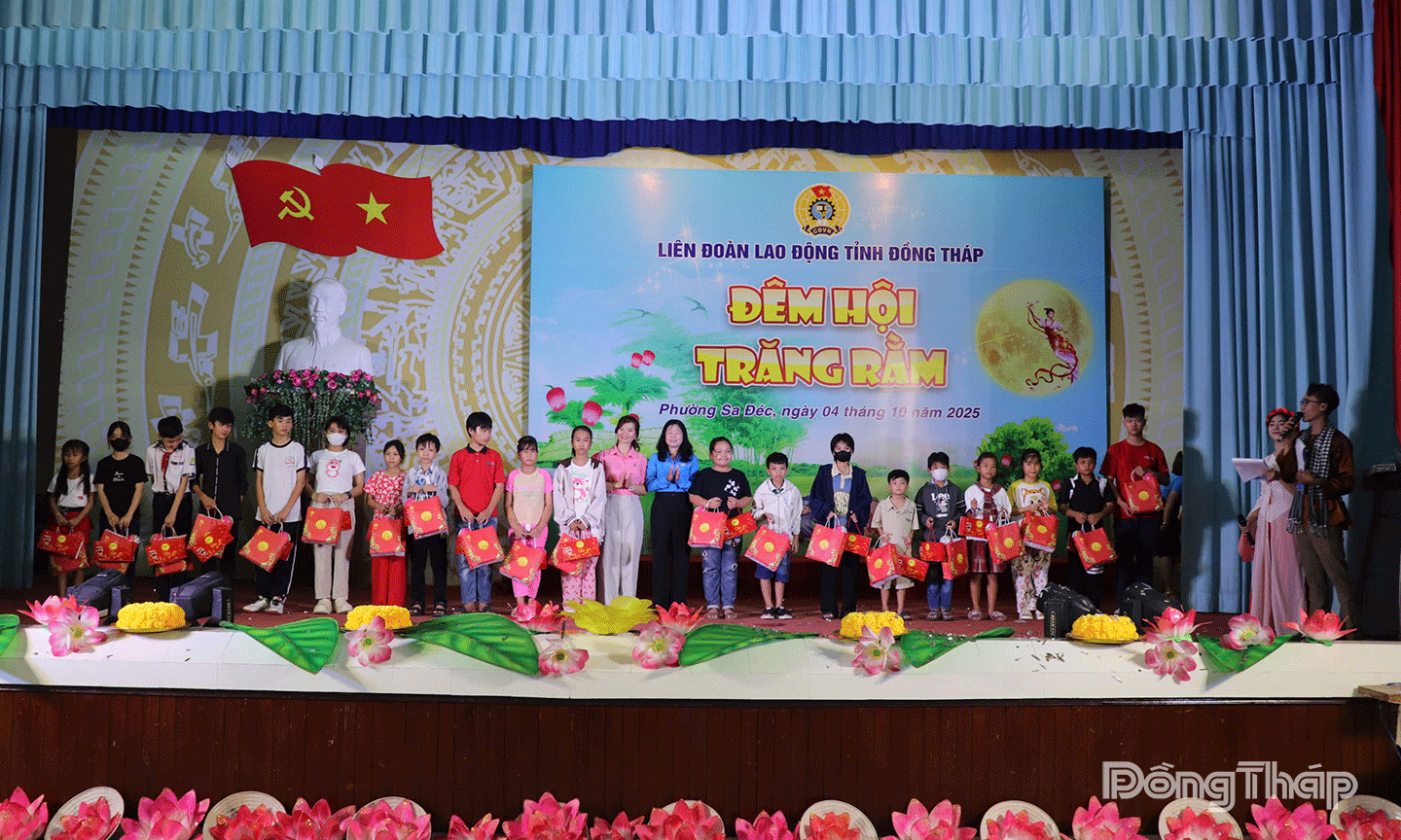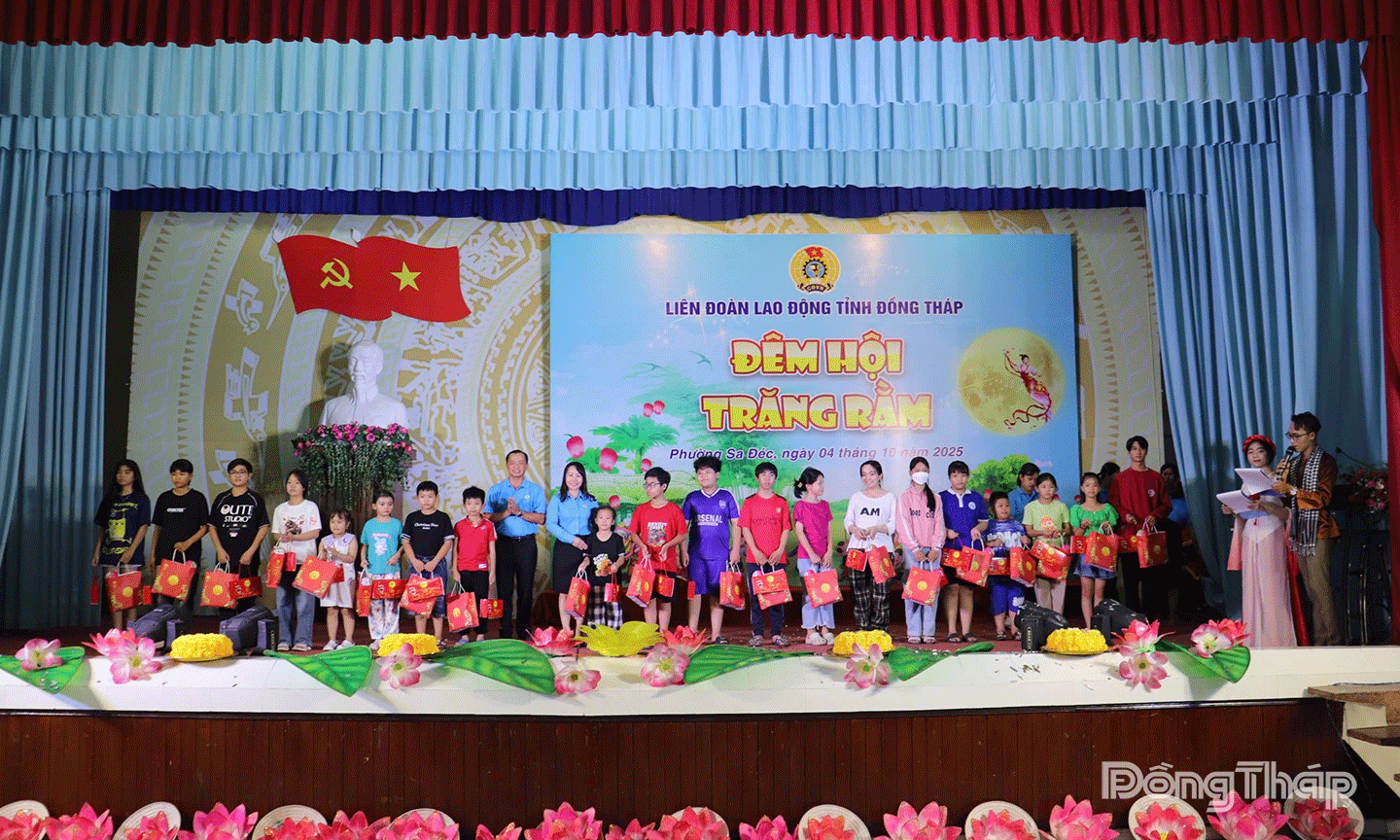 (ĐTO) Tối ngày 4-10, tại Hội trường Ủy ban Mặt trận Tổ quốc Việt Nam phường Sa Đéc, Liên đoàn Lao động (LĐLĐ) tỉnh Đồng Tháp tổ chức Chương trình “Đêm hội Trăng rằm” năm 2025, mang đến niềm vui Trung thu cho hơn 300 em thiếu nhi là con đoàn viên, người lao động có hoàn cảnh khó khăn.