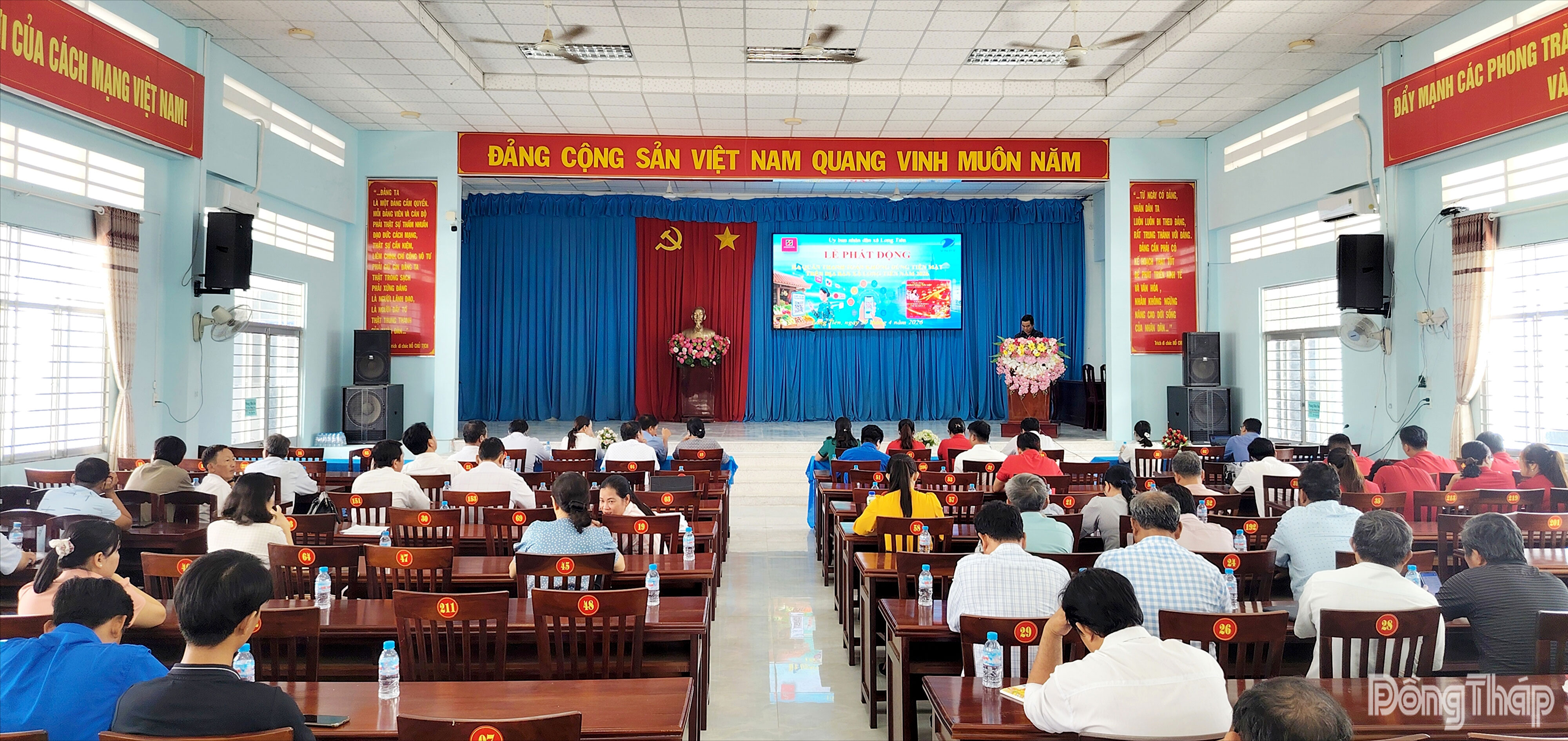 (ĐTO) Sáng 29-4, UBND xã Long Tiên tổ chức Lễ phát động ra quân thanh toán không dùng tiền mặt trên địa bàn xã năm 2026, với sự tham dự của lãnh đạo Đảng ủy, UBND xã, đại diện các ban, ngành, đoàn thể xã và 29 ấp, cùng đông đảo người dân và hộ kinh doanh.