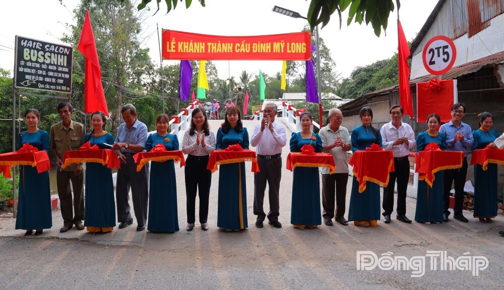 (ĐTO) Ngày 16-1, Đảng ủy, UBND xã Mỹ Hiệp phối hợp cùng Hội Khoa học Kỹ thuật (KHKT) Cầu đường tỉnh Đồng Tháp và các đơn vị tài trợ tổ chức Lễ khánh thành cầu Đình ấp Mỹ Long 1.