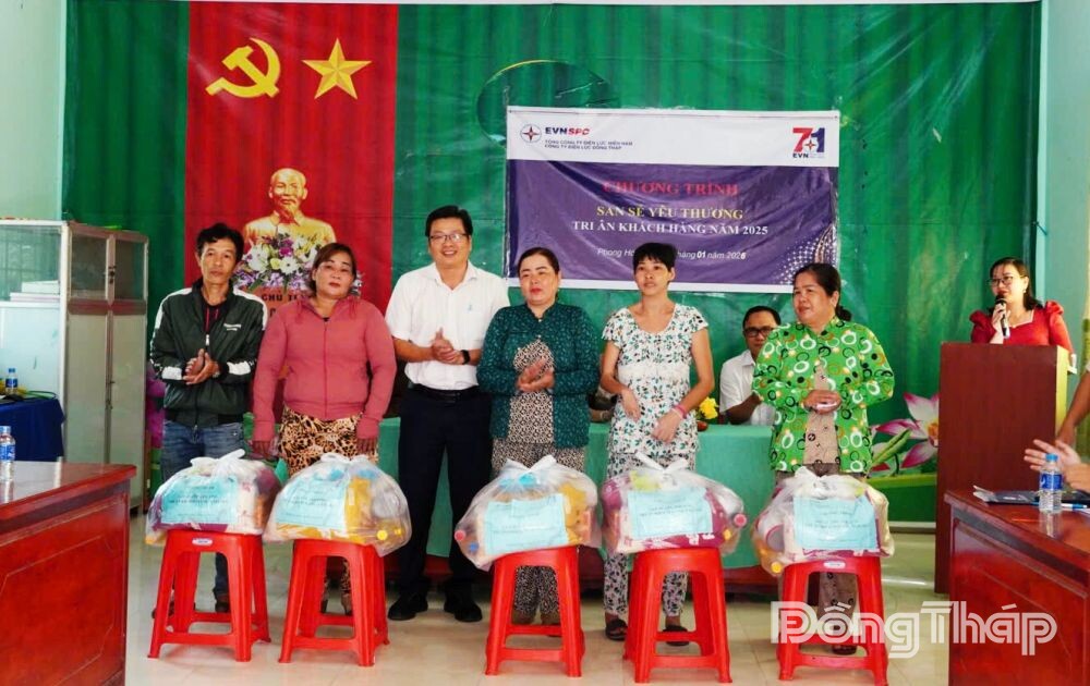 Dịp này, Công ty Điện lực Đồng Tháp trao tặng 20 phần quà cho người dân nghèo, người có hoàn cảnh khó khăn trên địa bàn ấp Tân Thạnh, xã Phong Hòa mỗi phần quà trị giá 500 ngàn đồng.
