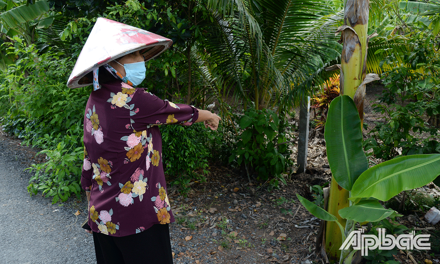 Việc trồng cây như vậy làm che khuất tầm nhìn người tham gia giao thông. Bà Tiếc đã nhiều lần làm đơn phản ánh gửi đến UBND xã Phú Kiết và UBND huyện Chợ Gạo để yêu cầu xử lý. Bà Tiếc kiến nghị buộc ông Minh và ông Dư chấm dứt hành vi vi phạm, trả lại hiện trạng ban đầu của đất hành lang an toàn đường bộ.