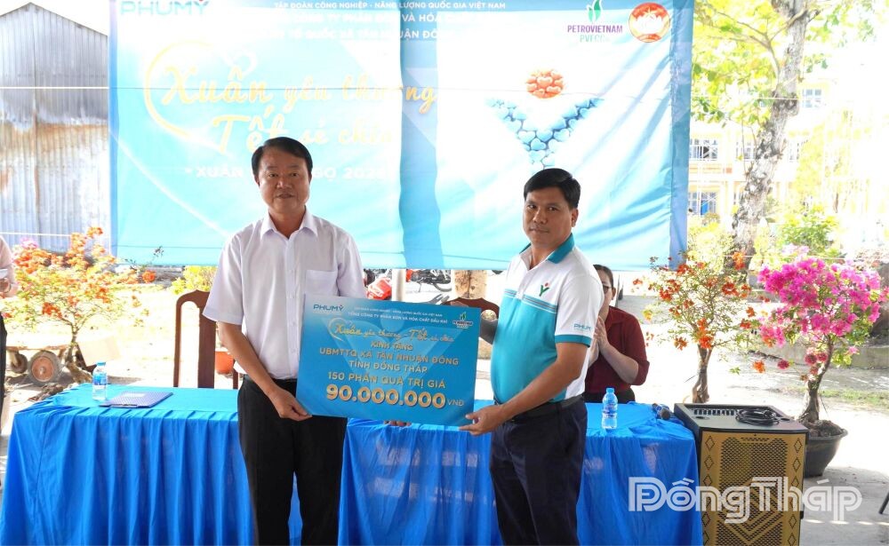 (ĐTO) Ngày 23-1, Ủy ban MTTQ Việt Nam xã Tân Nhuận Đông, tỉnh Đồng Tháp phối hợp Tổng Công ty Phân bón và Hóa chất Dầu khí - CTCP và Công ty CP Phân bón và Hóa chất Dầu khí Tây Nam Bộ tổ chức Chương trình trao quà Tết Nguyên đán Bính Ngọ 2026 với chủ đề “Xuân yêu thương - Tết sẻ chia”.