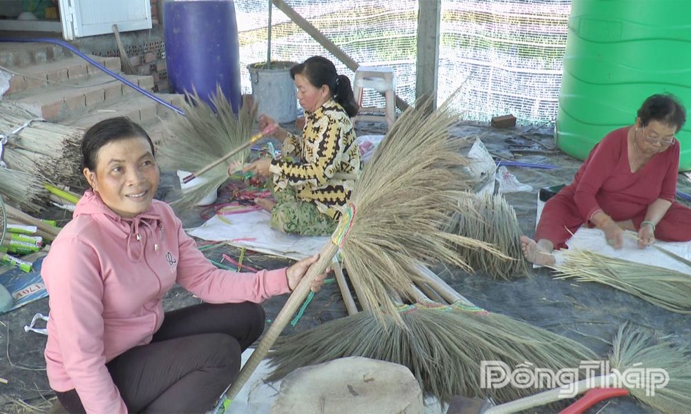Điển hình như trường hợp của gia đình chị Lê Thị Pha (ấp Lý Quàn 1). Những lúc nông nhàn, chồng chị là anh Ngô Phú Cường đi hái bông sậy trên các tuyến đê bao gần nhà, mang về phơi khô để bó chổi