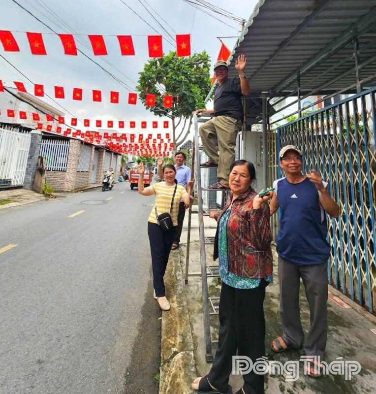 người dân thực hiện mô hình “Tuyến đường hoa - cờ hoa” chào mừng các ngày lễ lớn trong năm 2025. Nguồn: Đảng ủy phường Đạo Thạnh cung cấp.