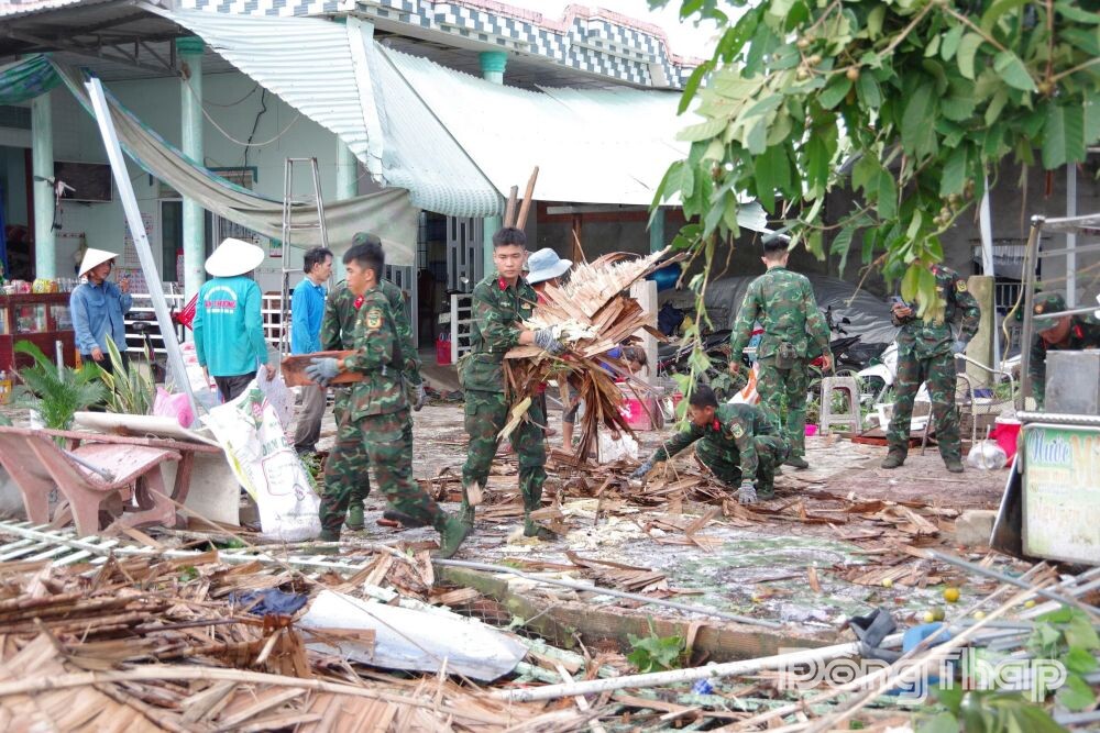 Đồng Tháp giúp Nhân dân khắc phục hậu quả thiên tai xã Ba Sao và các địa bàn bị ảnh hưởng do trận dông lốc xảy ra vào tháng 7-2025. Ảnh: THANH LÂM