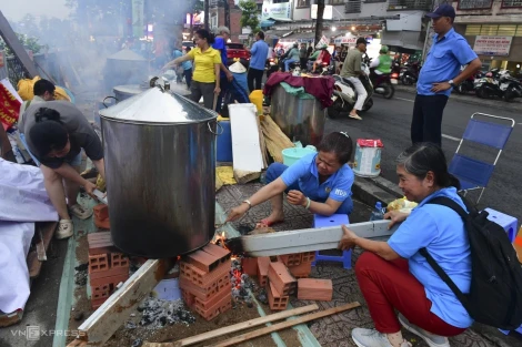 Nấu 2.000 bánh tét bên bờ kênh TP HCM tặng người khó khăn