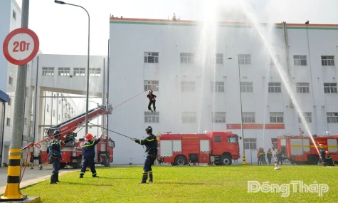 Đồng Tháp diễn tập phương án chữa cháy, cứu nạn, cứu hộ có huy động nhiều lực lượng, phương tiện