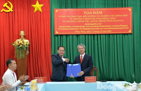 DONG THAP PROVINCE POLITICAL SCHOOL: Exchanging experience in training, fostering, and scientific research with Salavan Provincial Political and Administrative School