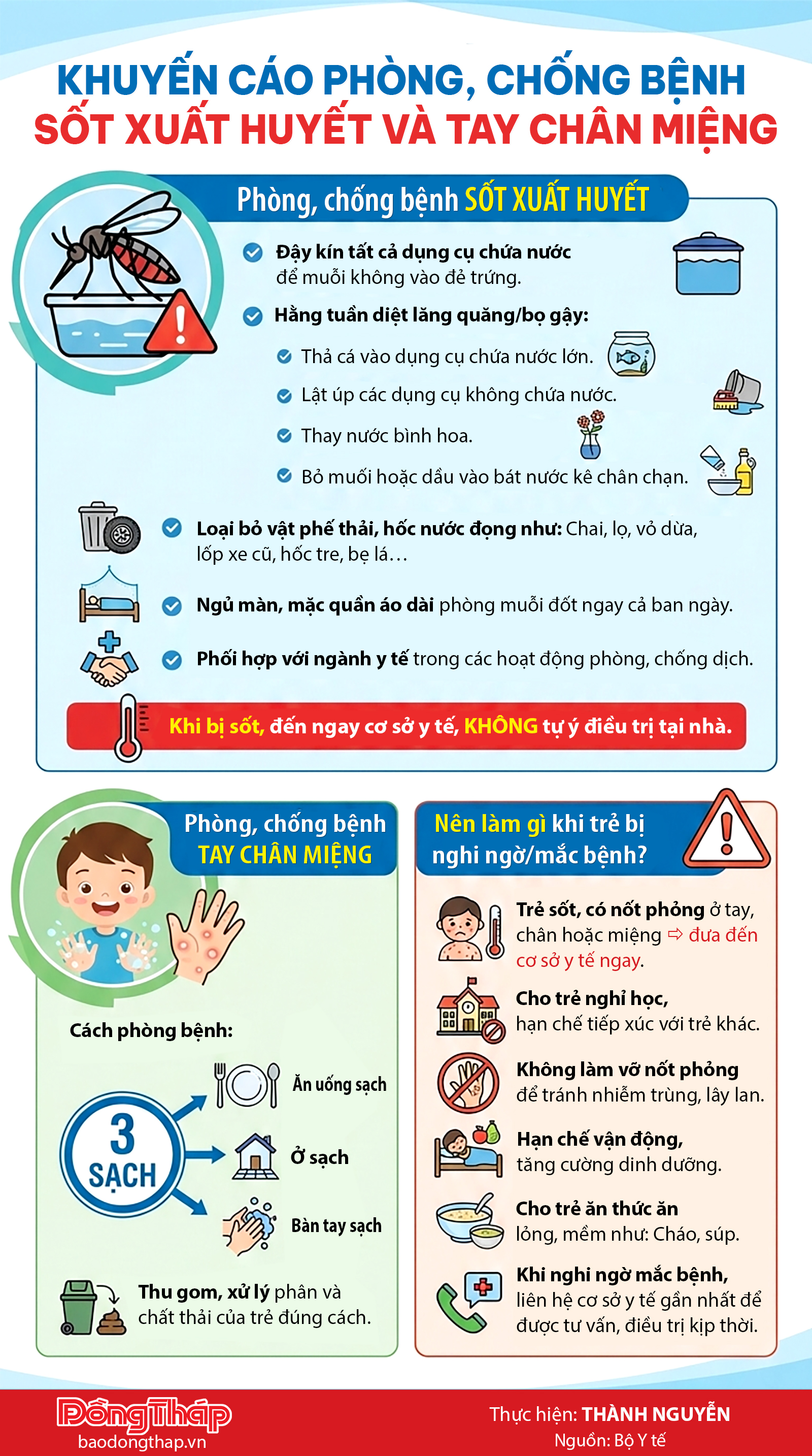 [Infographic] Khuyến cáo phòng, chống bệnh sốt xuất huyết và tay chân miệngChủ Nhật, 18/01/2026, 16:35 (GMT+7) Từ khóa: phòng chống sốt xuất huyếtdiệt loăng quăng bọ gậyphòng chống tay chân miệngkhuyến cáo phòng bệnhdụng cụ chứa nước Bình luận 🔄 Gửi