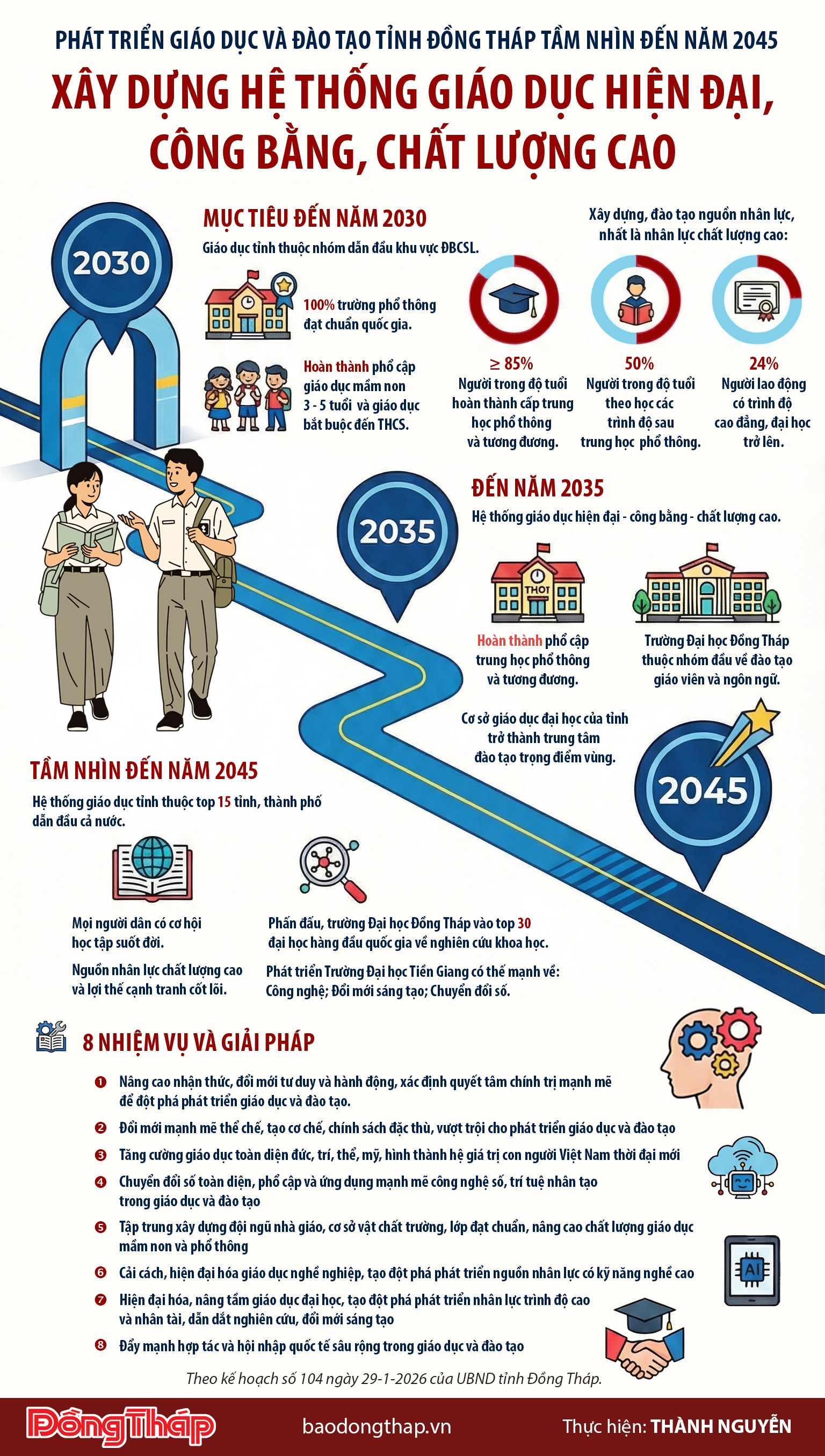 [Infographic] Phát triển giáo dục và đào tạo tỉnh Đồng Tháp tầm nhìn đến năm 2045