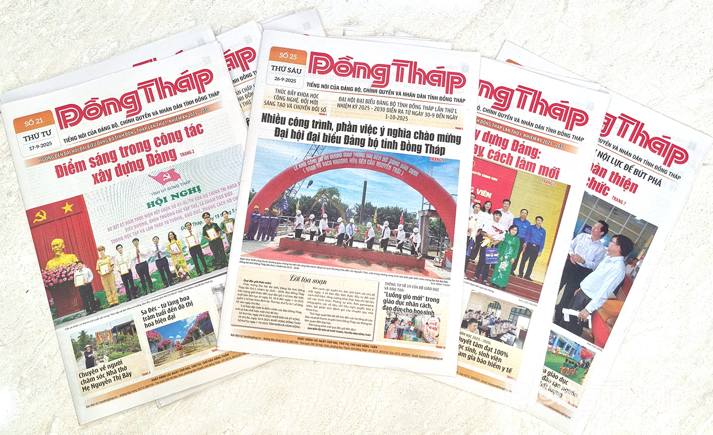 Chào mừng Đại hội đại biểu Đảng bộ tỉnh Đồng Tháp lần thứ I, nhiệm kỳ 2025 - 2030, Báo Đồng Tháp trân trọng giới thiệu đến quý độc giả 3 số báo đặc biệt, xuất bản liên tục từ ngày 29, 30-9 đến ngày 1-10-2025 (gồm 2 số báo theo định kỳ: Thứ Hai, thứ Tư và 1 số tăng kỳ vào ngày thứ Ba).