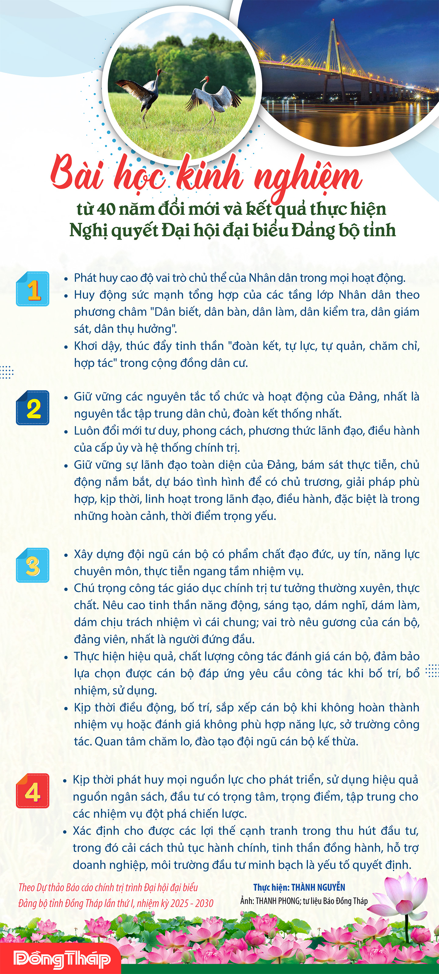 [Infographic] Bài học kinh nghiệm từ 40 năm đổi mới và kết quả thực hiện Nghị quyết Đại hội đại biểu Đảng bộ tỉnh