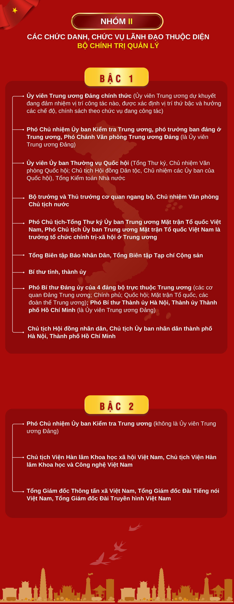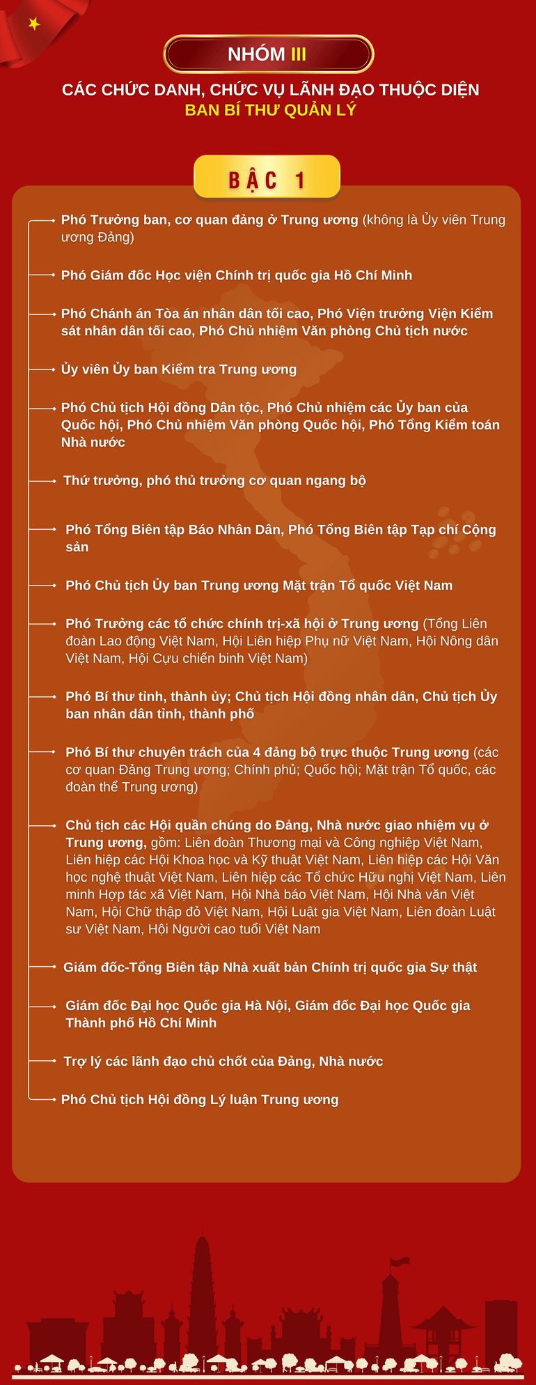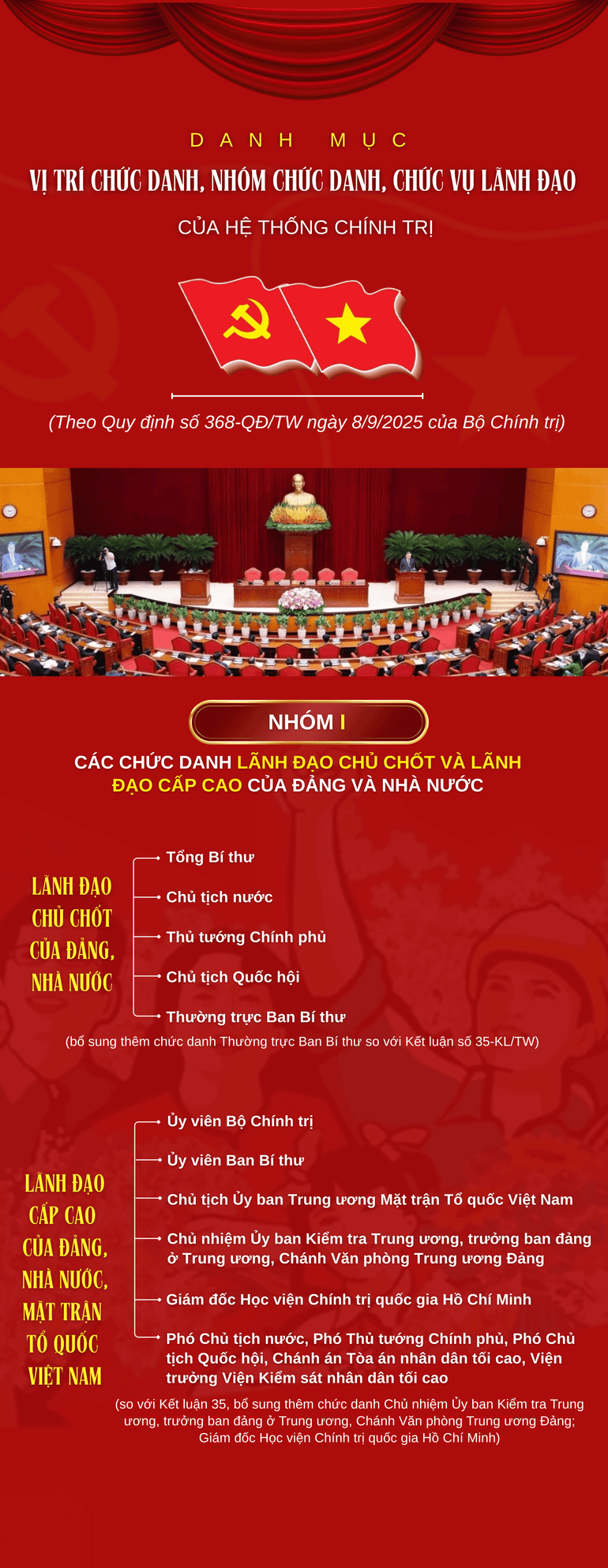[Infographic] Danh mục vị trí chức danh, nhóm chức danh, chức vụ lãnh đạo của hệ thống chính trị