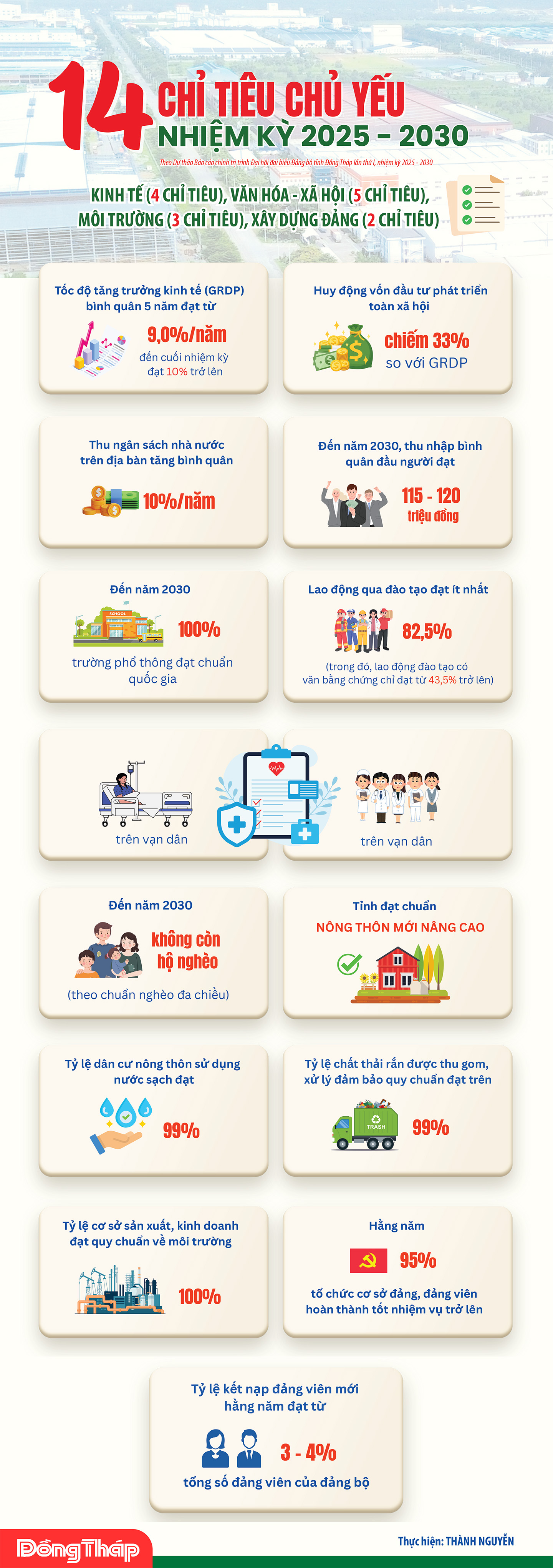 [Infographic] 14 chỉ tiêu chủ yếu nhiệm kỳ 2025 - 2030