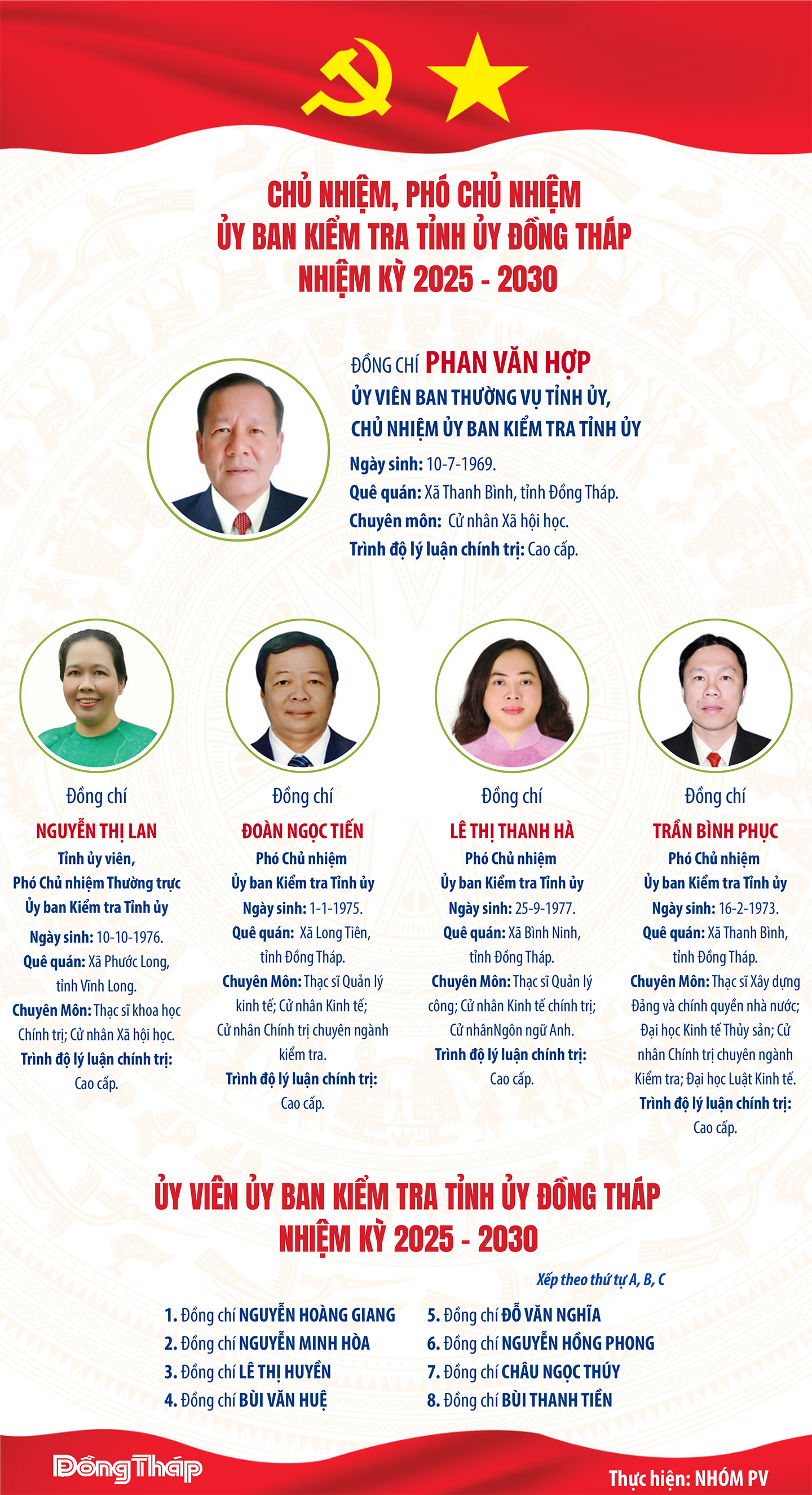 [Infographic] Chủ nhiệm, Phó Chủ nhiệm, Ủy viên Ủy ban Kiểm tra Tỉnh ủy Đồng Tháp nhiệm kỳ 2025 - 2030