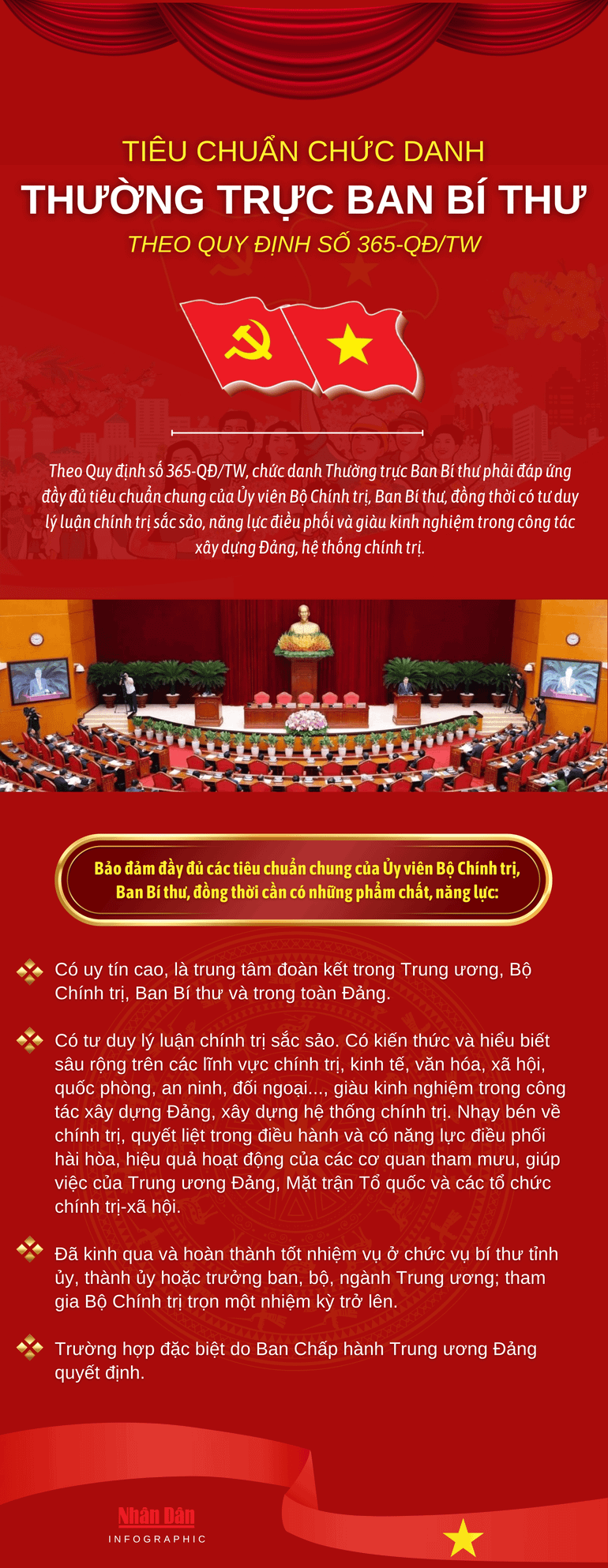 [Infographic] Tiêu chuẩn chức danh Thường trực Ban Bí thư theo Quy định 365