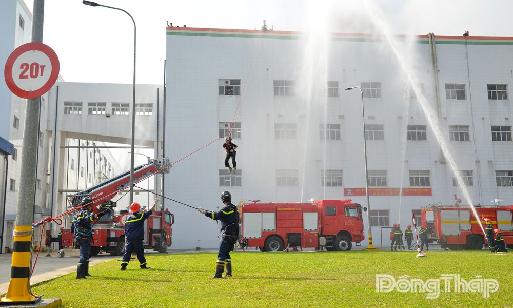 (ĐTO) Sáng 16-12, Ban Chỉ đạo diễn tập phương án chữa cháy, cứu nạn, cứu hộ (CNCH) tỉnh Đồng Tháp tổ chức diễn tập phương án chữa cháy, CNCH có huy động nhiều lực lượng, phương tiện tham gia tại Công ty TNHH Want - Want Việt Nam (Khu Công nghiệp Long Giang, xã Tân Phước 3).