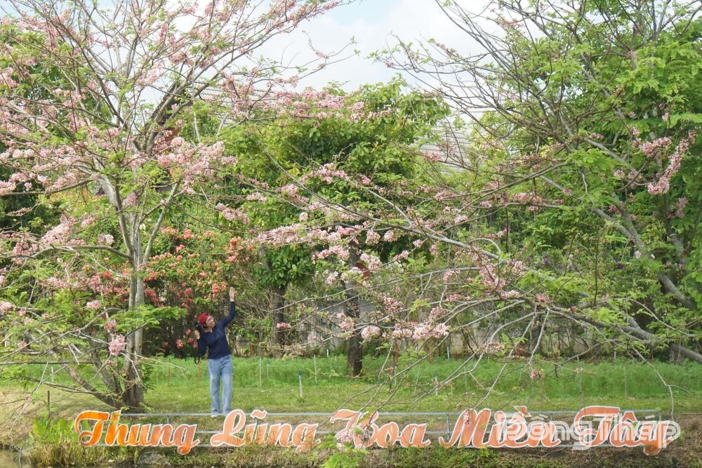 At Tu Ton Rose Garden (Sa Dec Ward), the space is entering its most beautiful time of year as the pink shower trees (Cassia javanica) are in full bloom, dyeing the entire garden in pink hues.